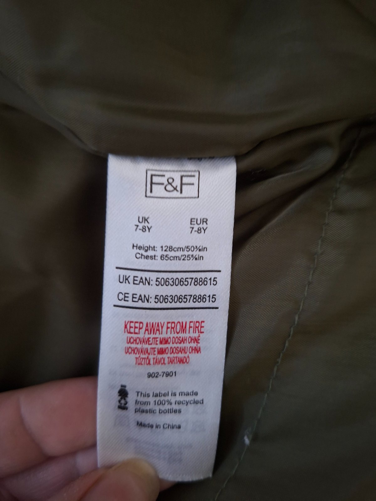 Bunda je vo výbornom stave, sťahovanie v páse šnúrkou, kapucňa s kožušinou je neodopínateľná. Uvedená veľkosť na štítku je 7-8 rokov.