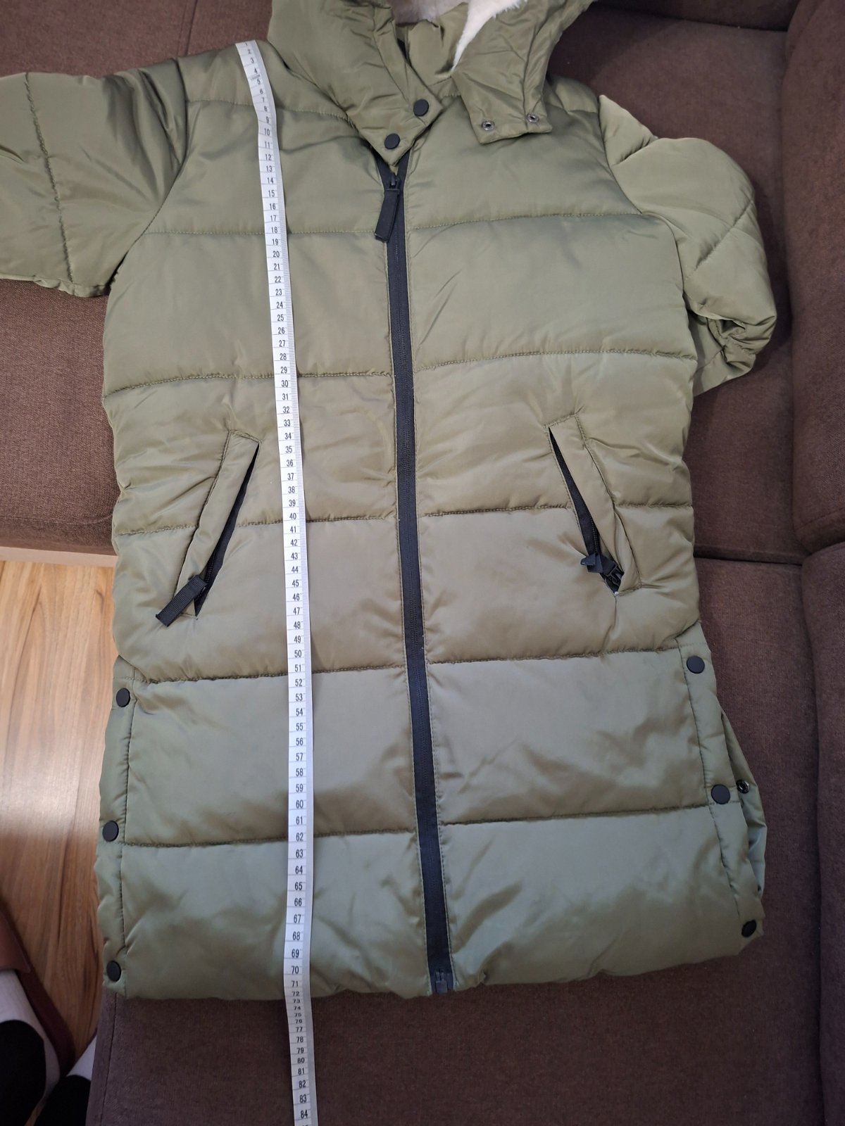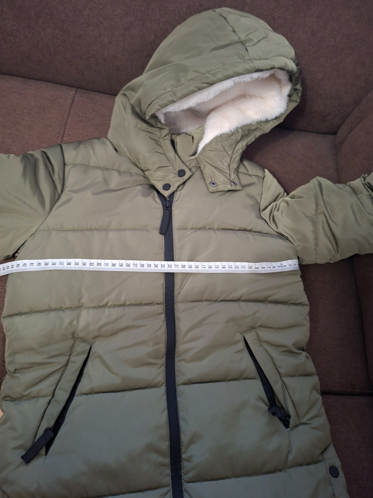 Veľmi teplá nosená parka. Veľkosť 8/9 rokov. Na patentoch rukavu má malé žmolky. Na zapínaní chýba jeden cvok😀. Kapucňu je možné odopnuť. Bundu je nutné dať do čistiarne! Riaďte sa rozmermi. šírka...