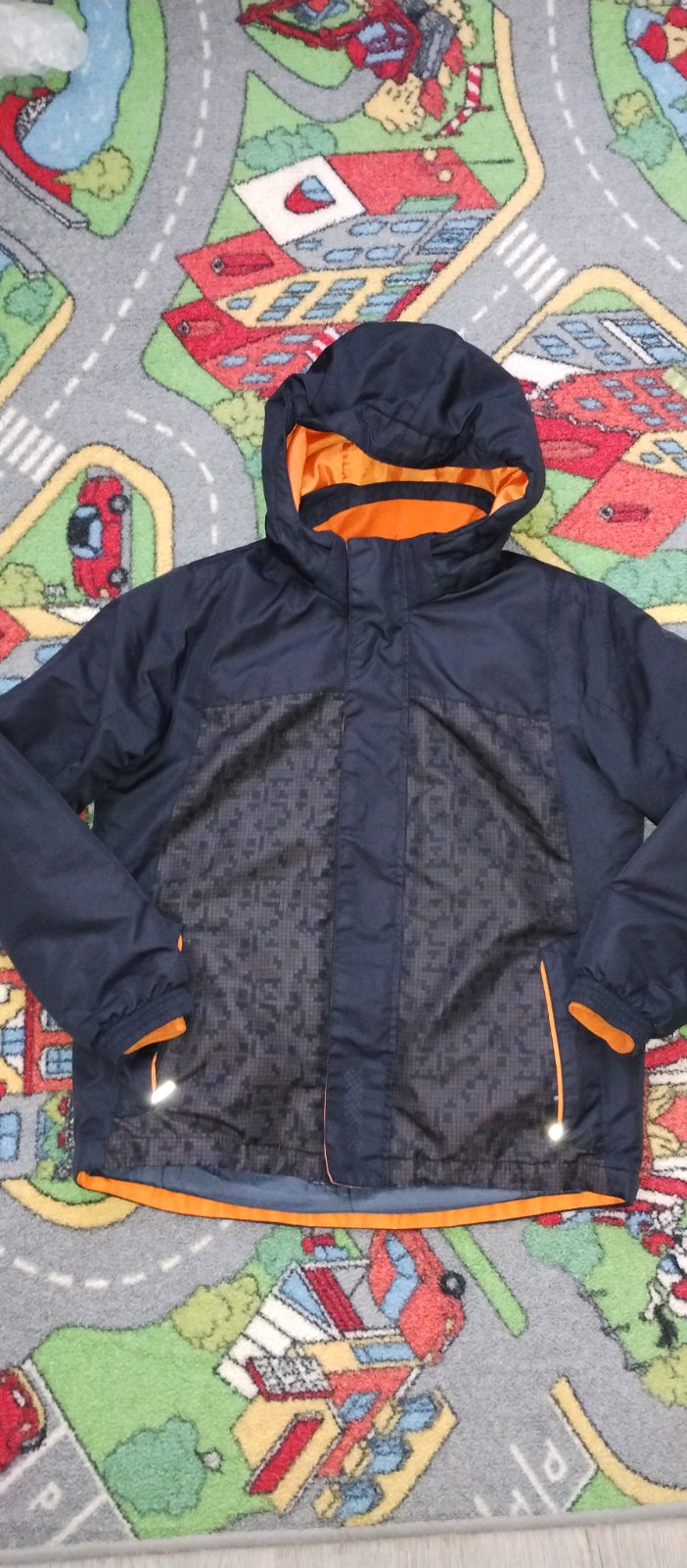 V dobrom používanom stave, ale asi už len tak okolo domu, nemá vážne poškodenia, len na tých maskacovych častiach také poosuchavane je to, aj na vreckach ten reflexný pásik, keď si priblížite fotky...