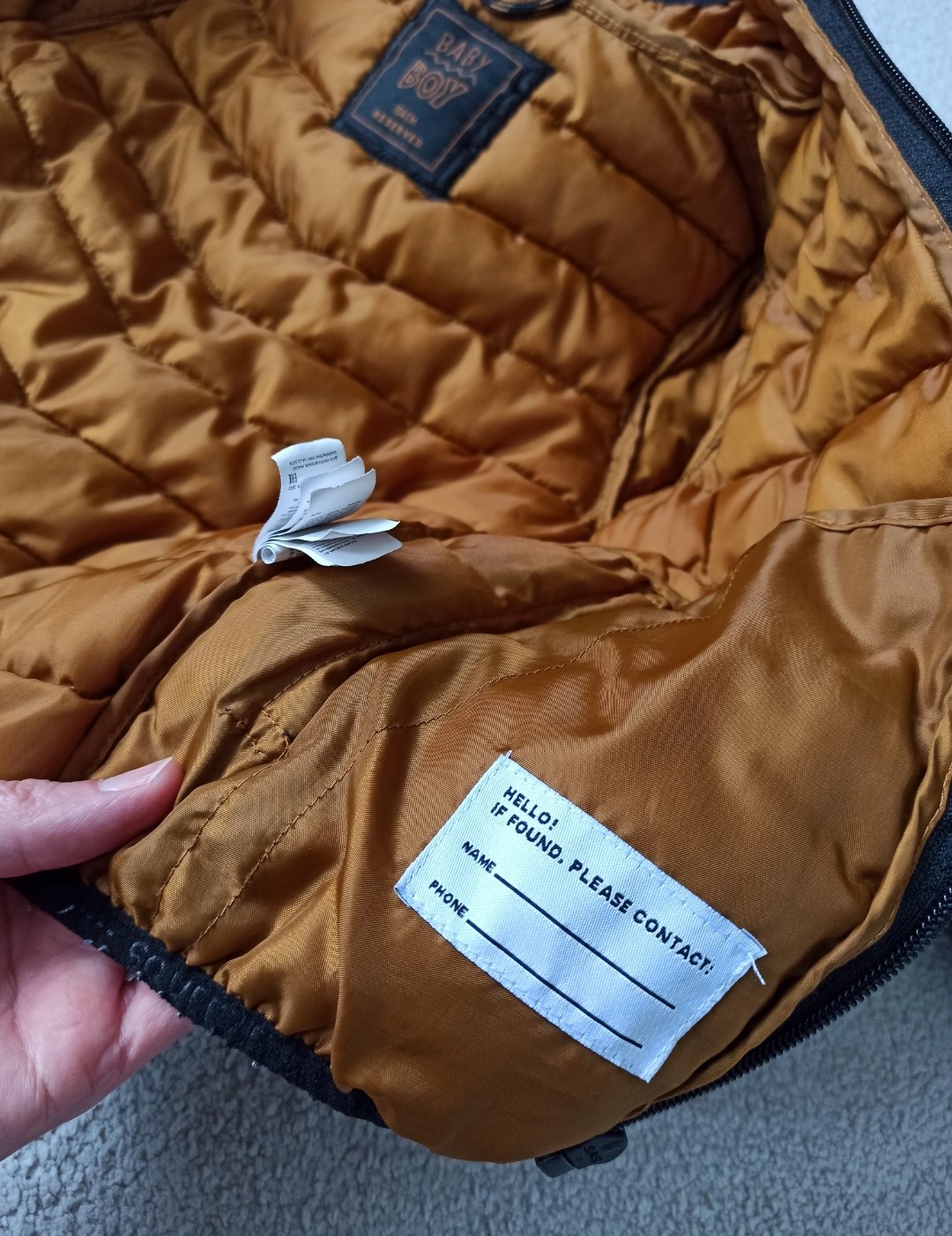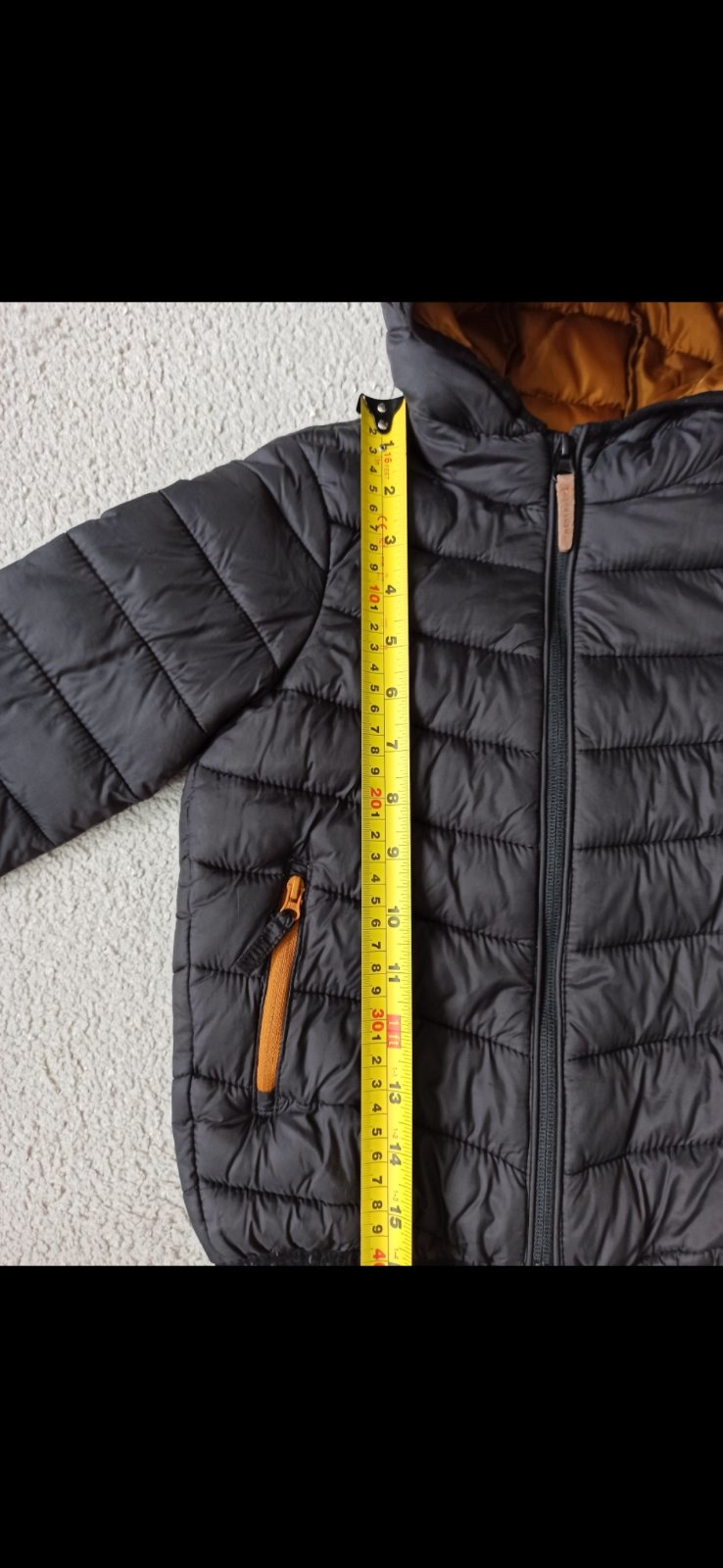 Vo veľmi peknom stave, zatiahnutie ktoré pri nosení vôbec nevidno-viď foto . Čierna farba zvonka, horčicová zvnútra