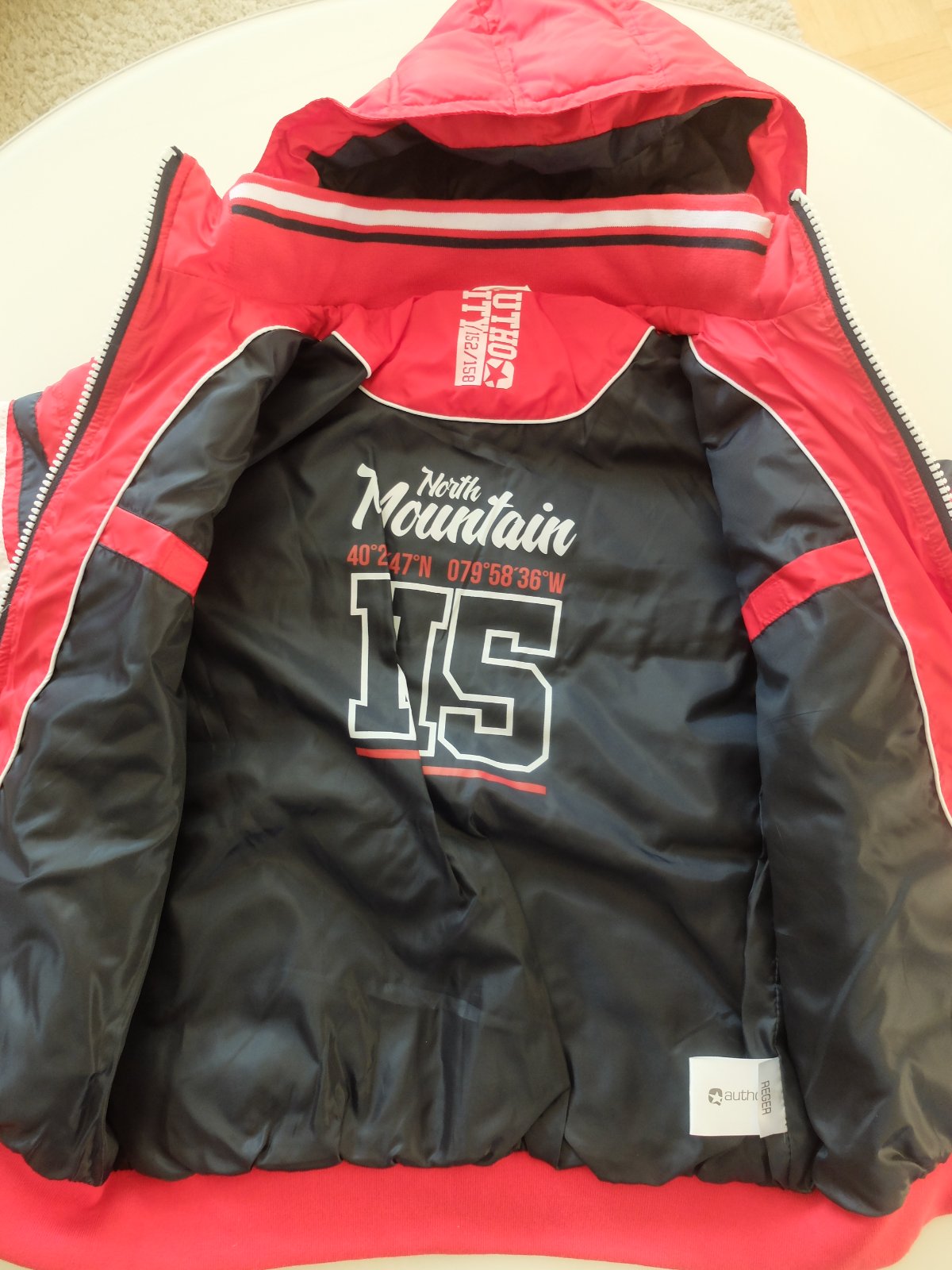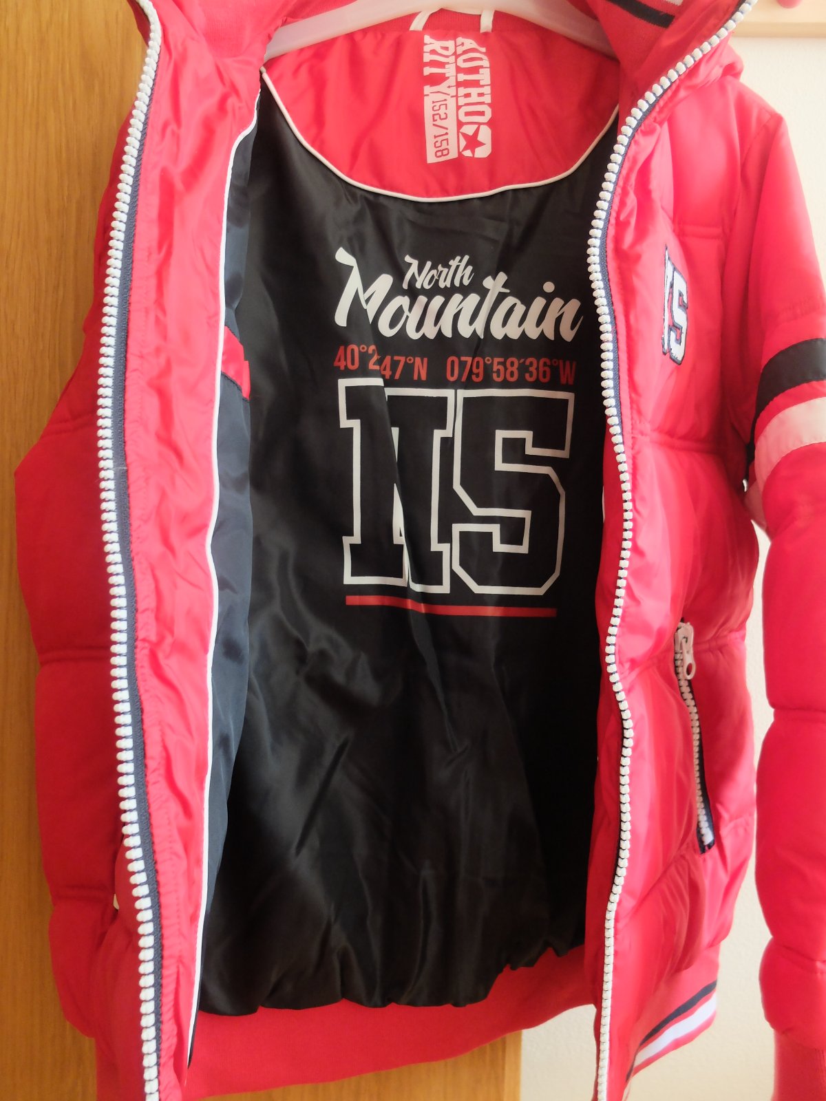 Zimna bunda Authority, vel. 152/158,.odolna proti vetru a vode. Celkova dlzka 68cm, sirka pod pazami 3x51cm, rukav od ramena 60cm, od krku 69cm. Zapinanie na zips a cvoky, reflexne prvky, vnutorny ...