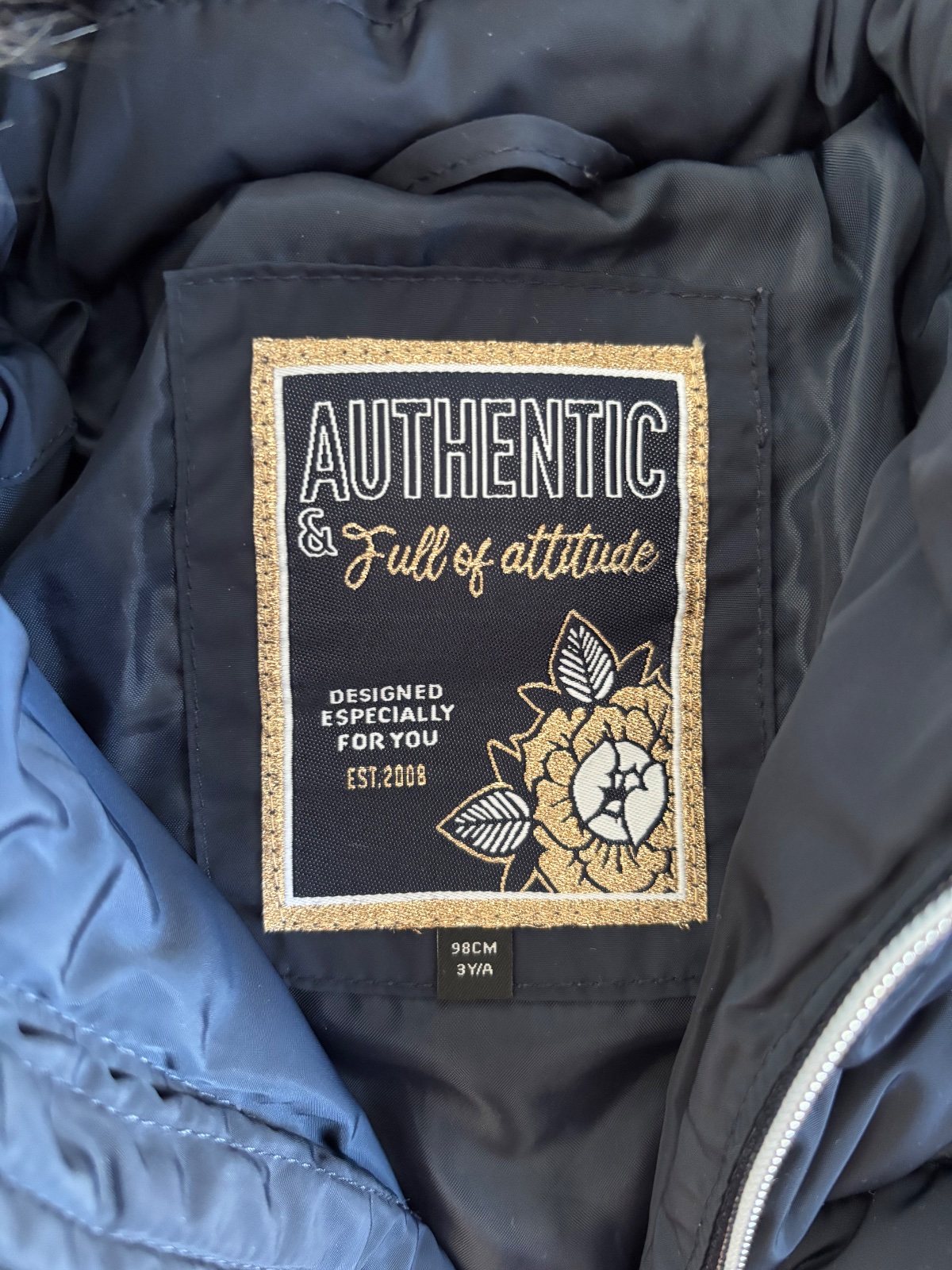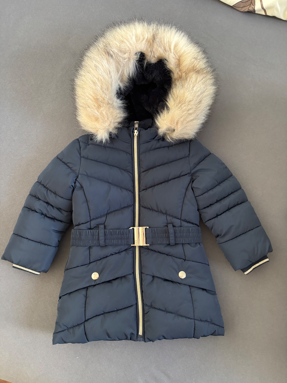 Úplne nová a nenosena vetrovka na treskúcu zimu. Paperova, lesklá, iba raz vyprata. Má na rukávoch strieborný štýlový pás. Napísané na veľkosť 3-4 roky, t.j. 104, ale podľa mňa je to 98. Dcéra má 3...