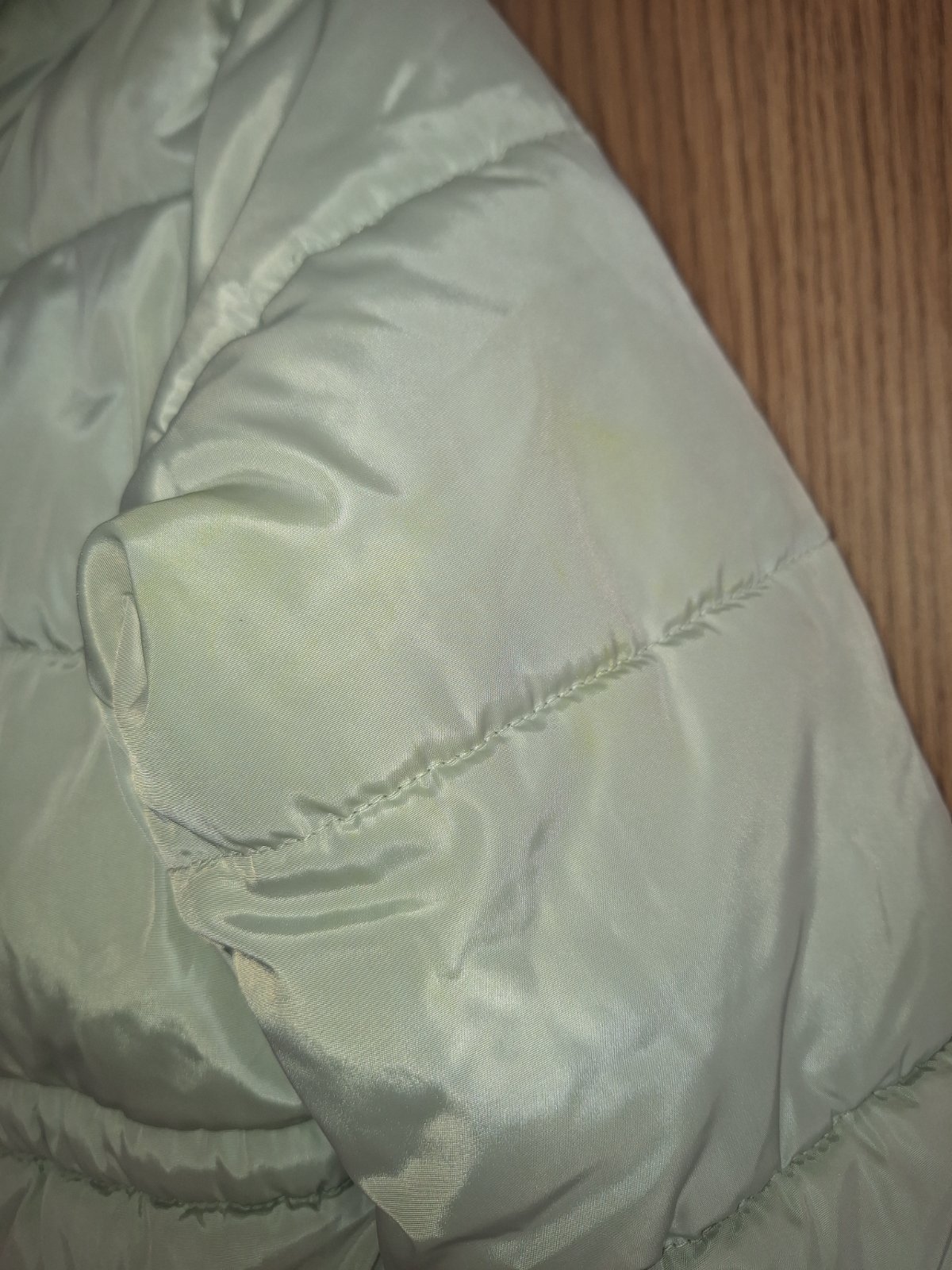 Vzadu zašité roztrhnutie. Na rúkavé jemný žltý fľak.