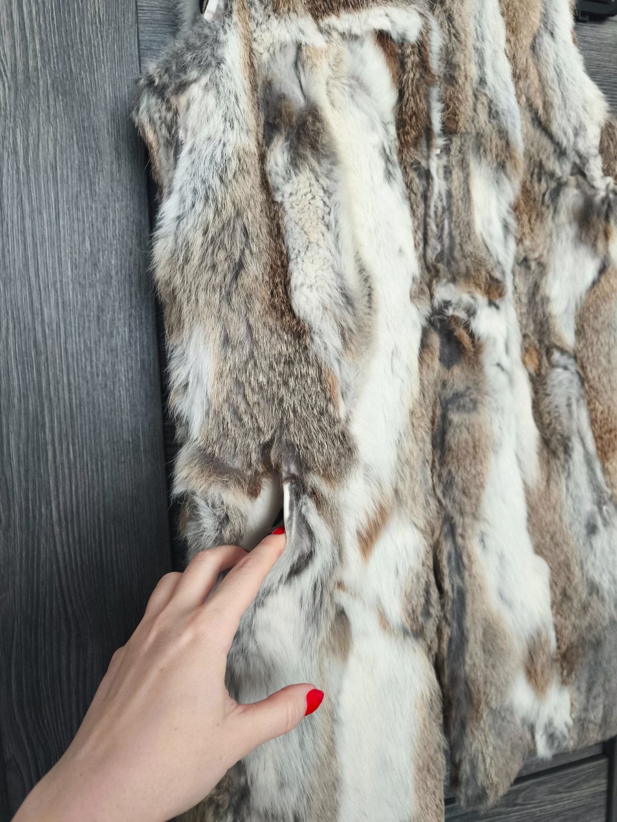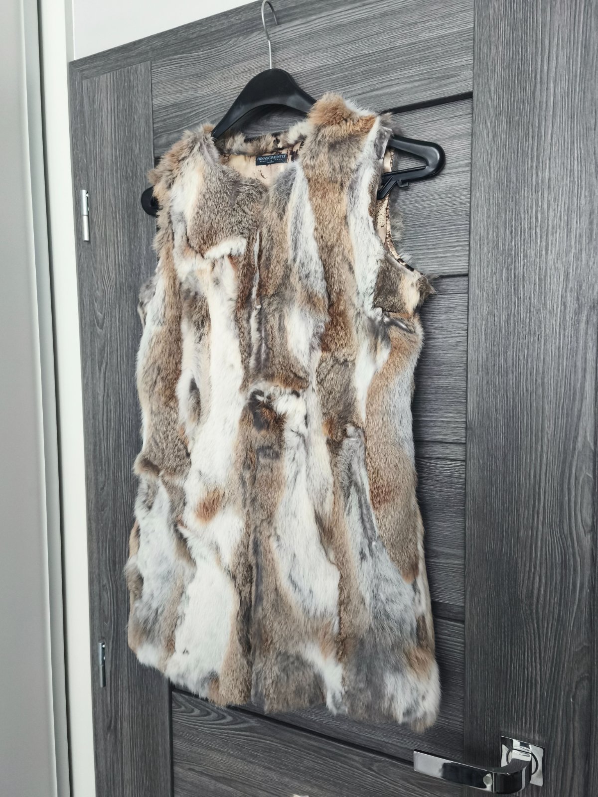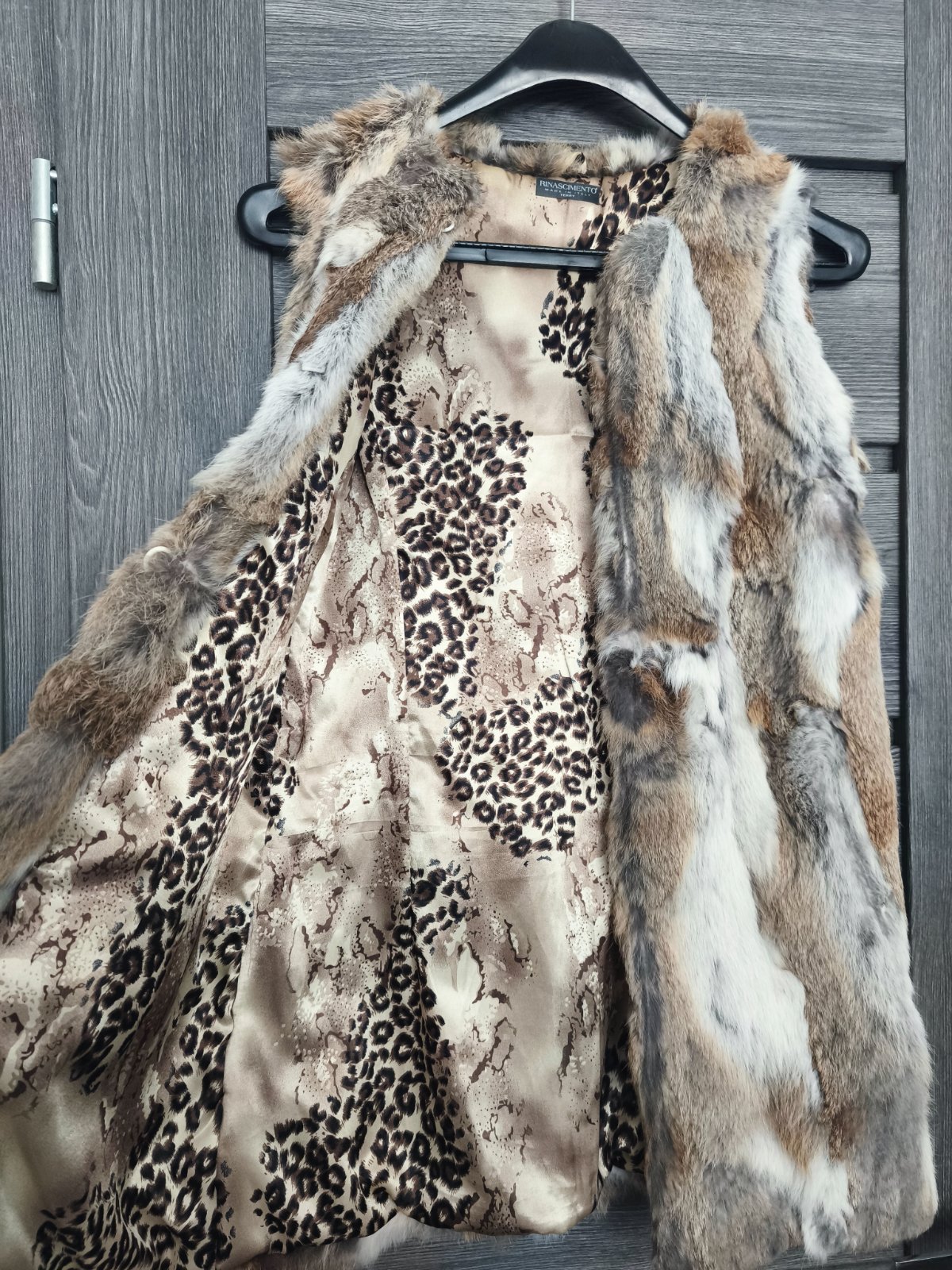 Nadherna vesta zo zajacika jemna na dotyk kvalitna talianska znacka Rinascimento, luxusna krasna podsivka. Zapina sa na haciky pekne sedi na XS/S. Top stav ako nova. Povodna cena vysoka.