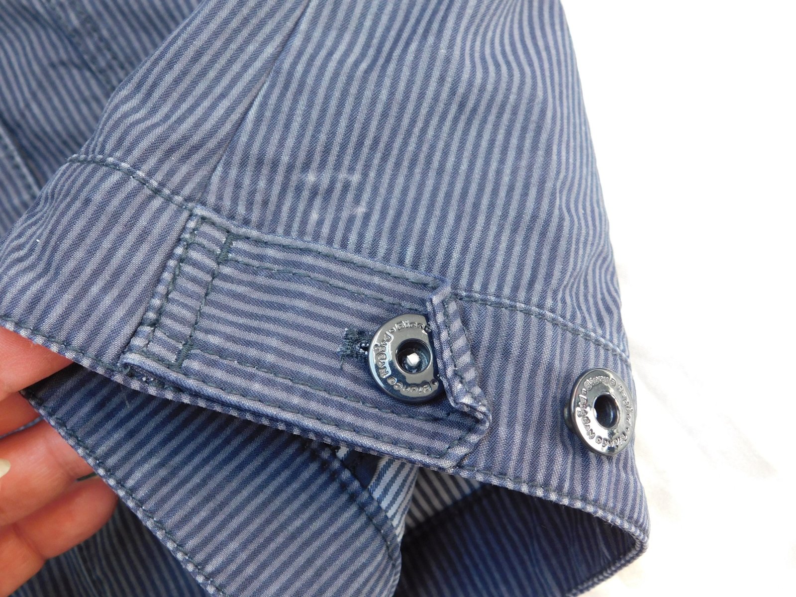Veľkosť píše 38/M ale sedí skôr na 36. Dĺžka od ramena 49, šírka pod rukávmi je 43 a dole obvod 38. Dĺžka rukáva od ramena 59 . Má vrecká a mini dierku vľavo dole.