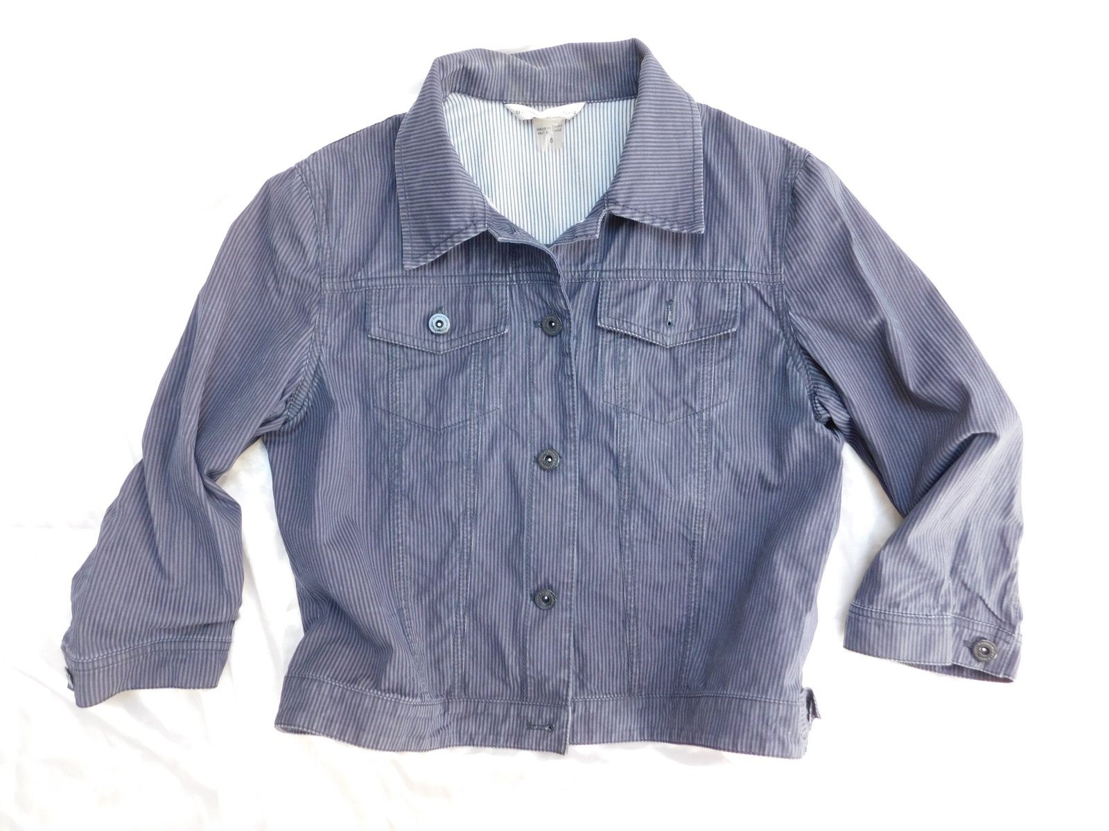 Luxusna damska denim bunda,modrej farby,pruzkovana.100%cotton.super stav.PC 89€ j53