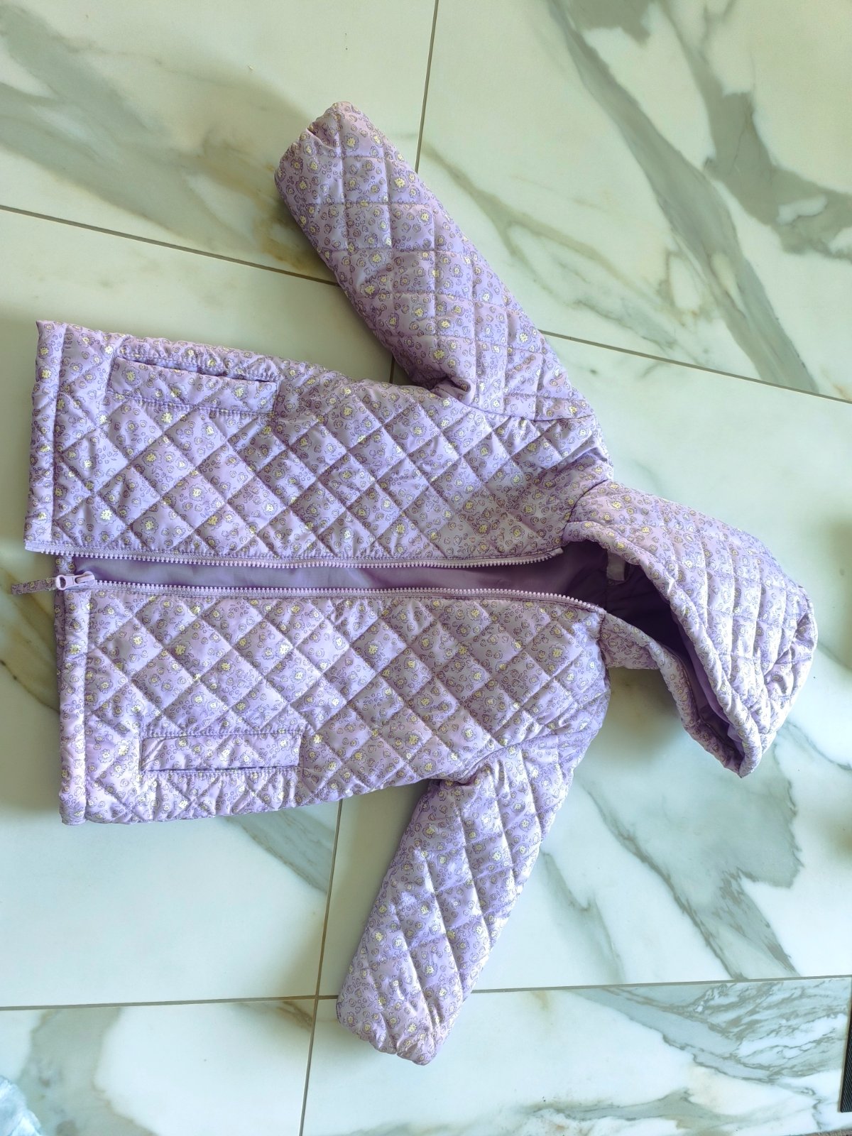 Bunda dievč.,veľ. 98, fialová s pásikmi, Výborný stav.