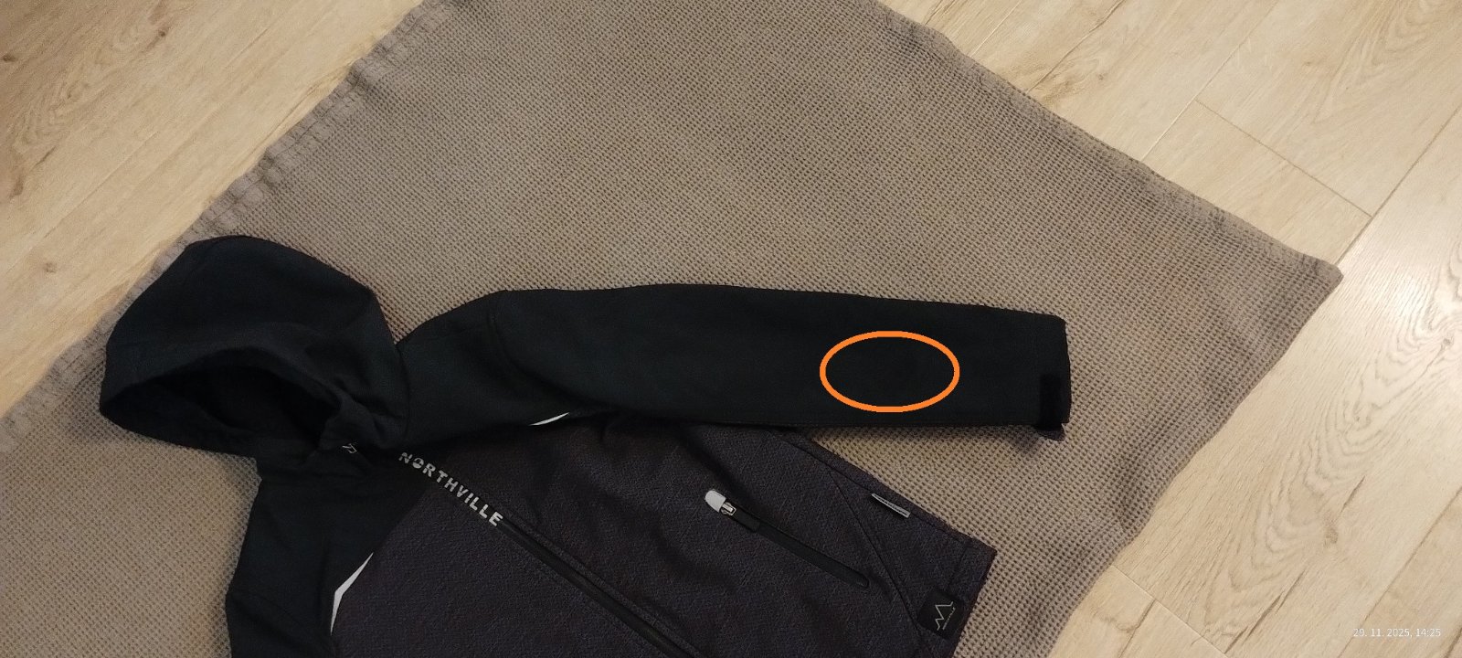 Kvalitná funkčná /water resistant, windproof viď foto/ softshellová bunda, kolekcia Northville. Je hrubšia ako klasické softshellky, mierne vatovaná, zateplená fleesom, my sme nosili v zime na vonkajšie aktivity. Na rukáve má fľak asi mastný? obyčajným tekutým gélom sa mi to nepodarilo odstrániť. Dĺžka rukáva od všitia kapuce 58cm...dĺžka meraná od ramena nadol PD 56 - ZD 58cm.