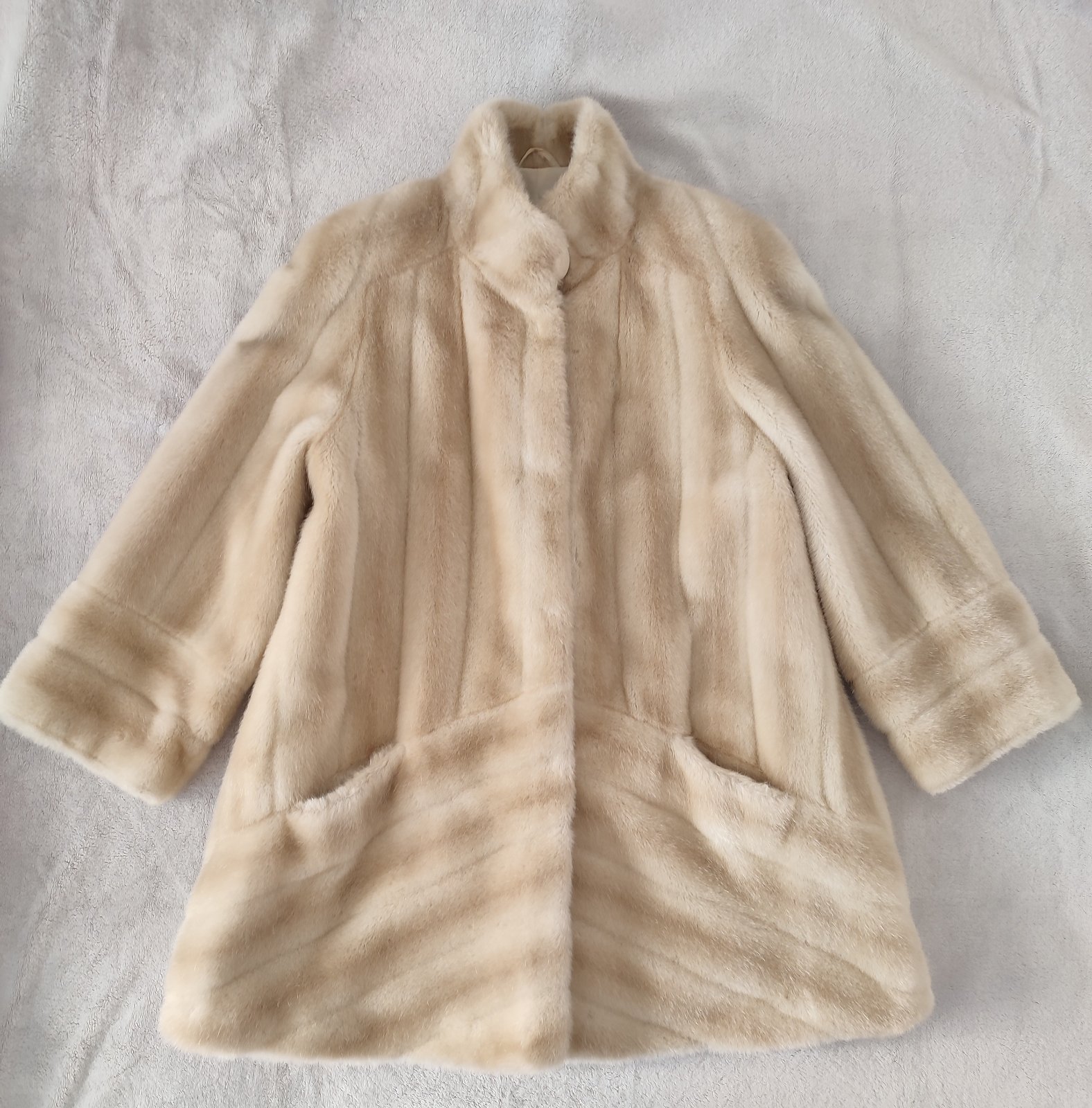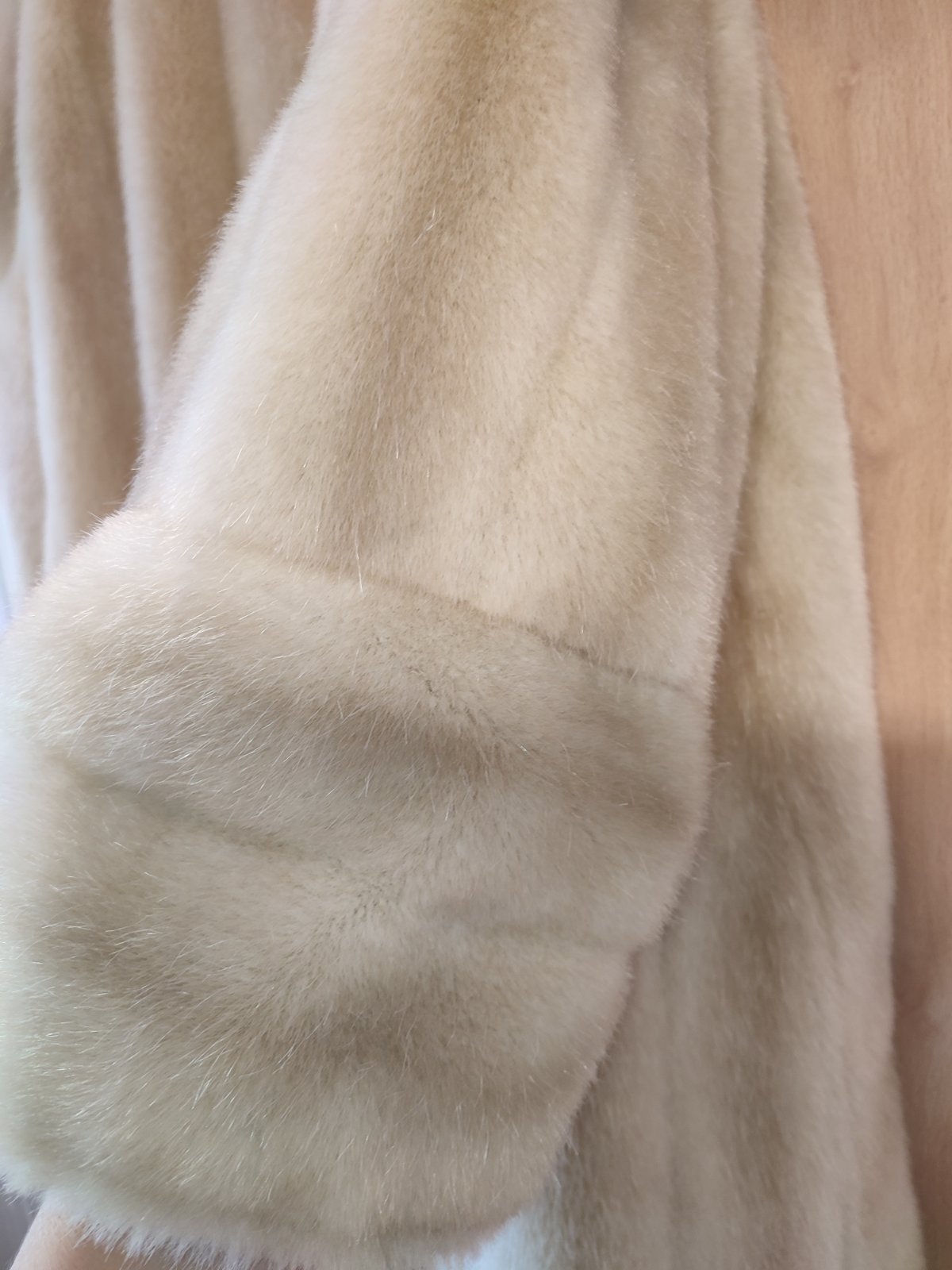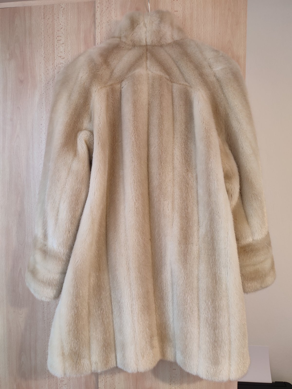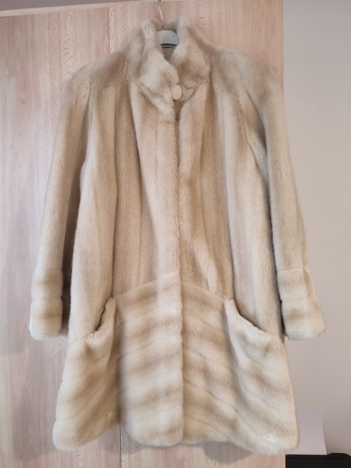 Krásny umelý kožuch málo nosený. Veľkosť 42. Miery: dlžka: 96cm, rukáv od krku: 73cm, cez prsia: 2x60cm. Cena 85 eur