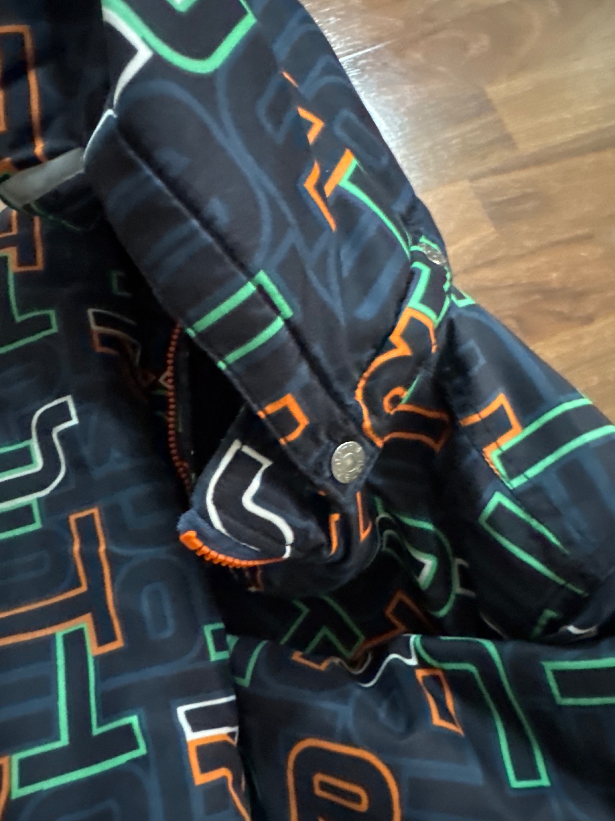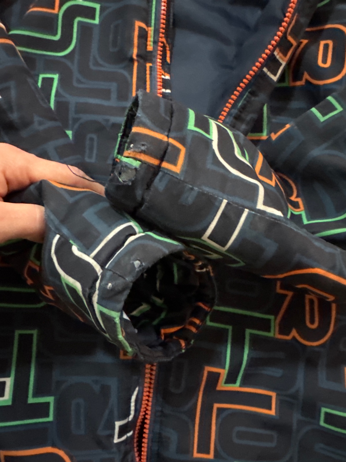 Pouzivana. Vidiet na rukavoch v vnutornej strany. Inac neposkodena. Prijemna. Odnimatelna kapuca.