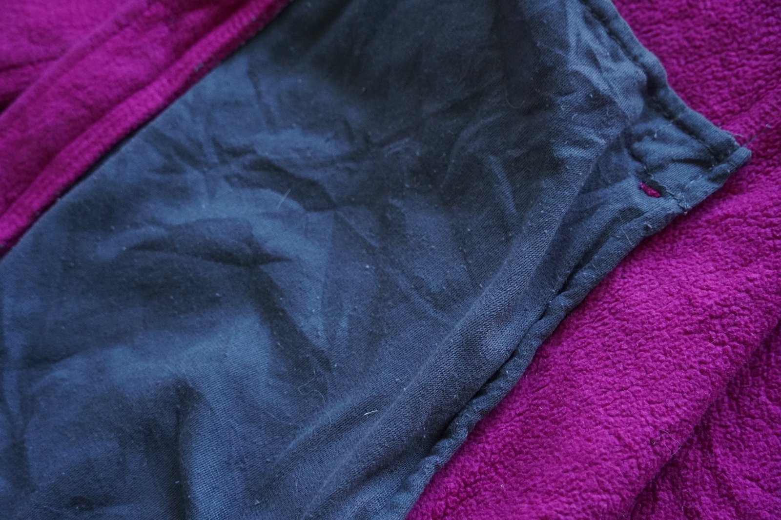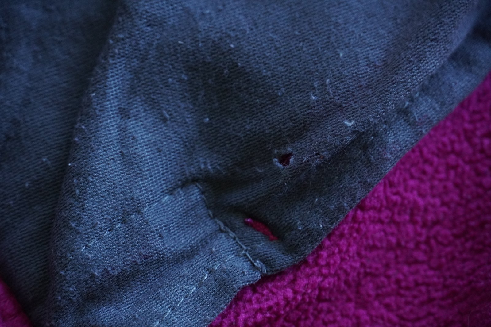 Má dve malé dierky a žmolky z prania zvnútra na vreckách, narušený šev hore pri kapucni (pozri posledné fotky), mierne opraná - určite ešte niekomu poslúži.