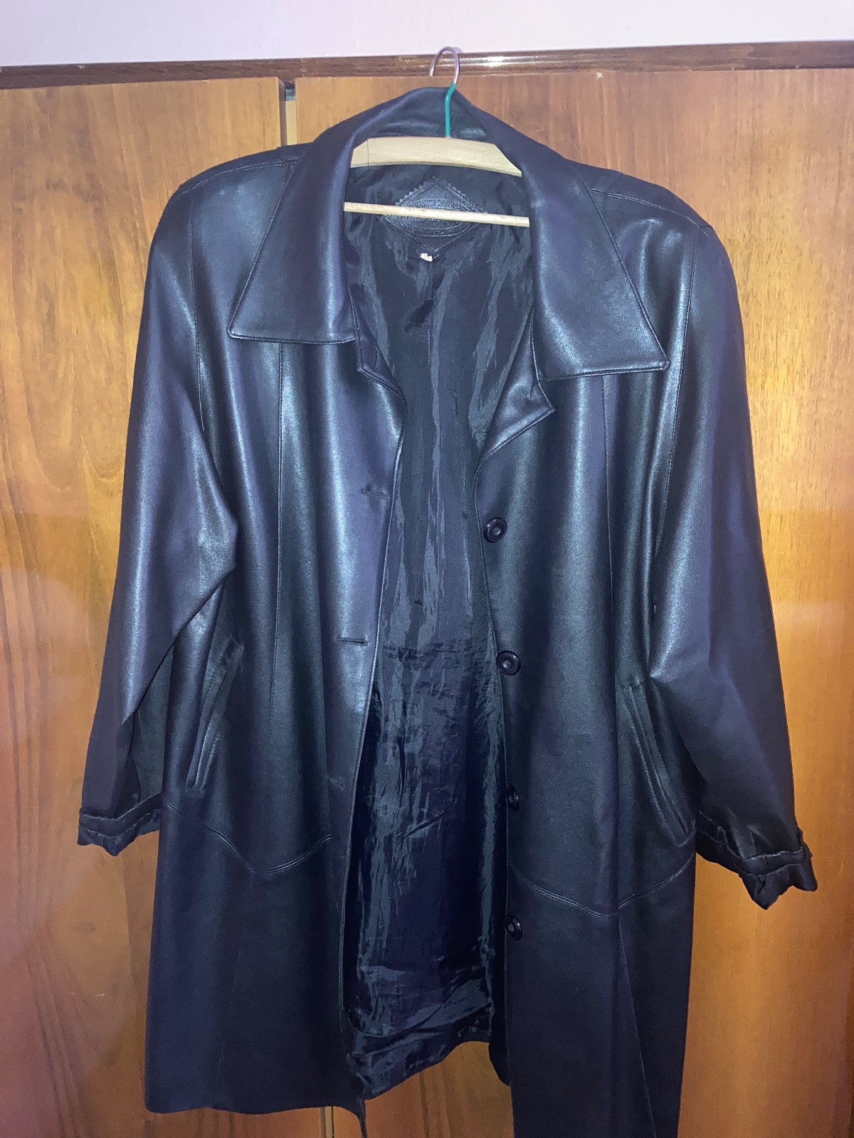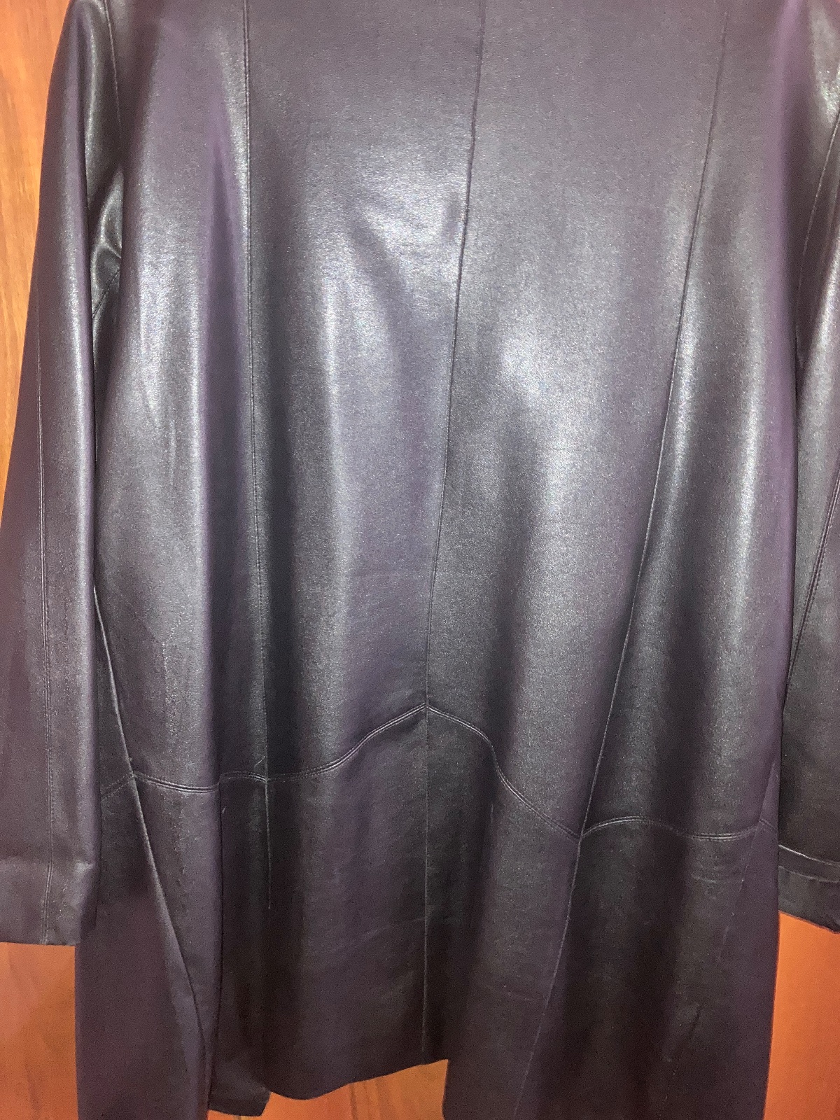 Predám novy koženy dlhý kabát,veľ.Xl.materiál:pravá koža