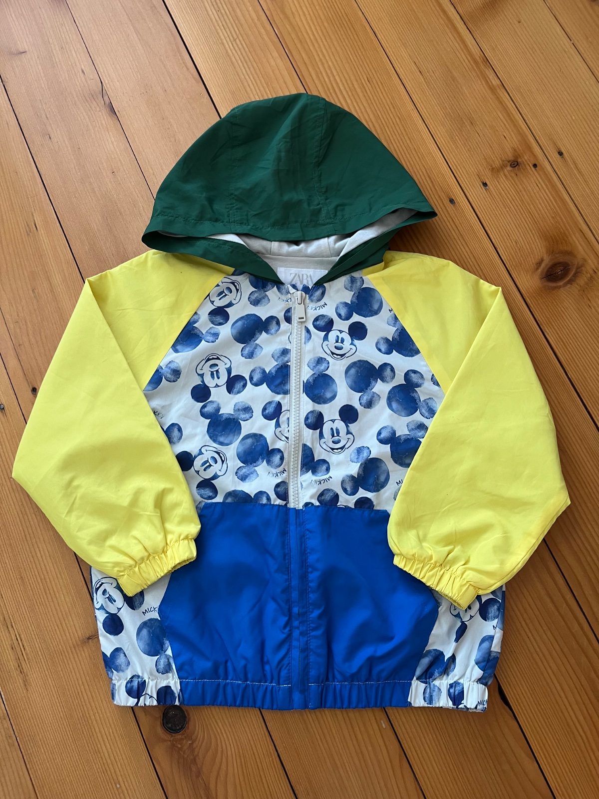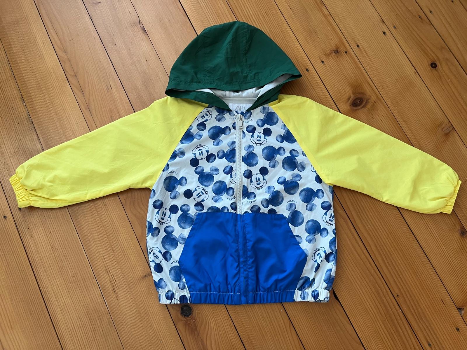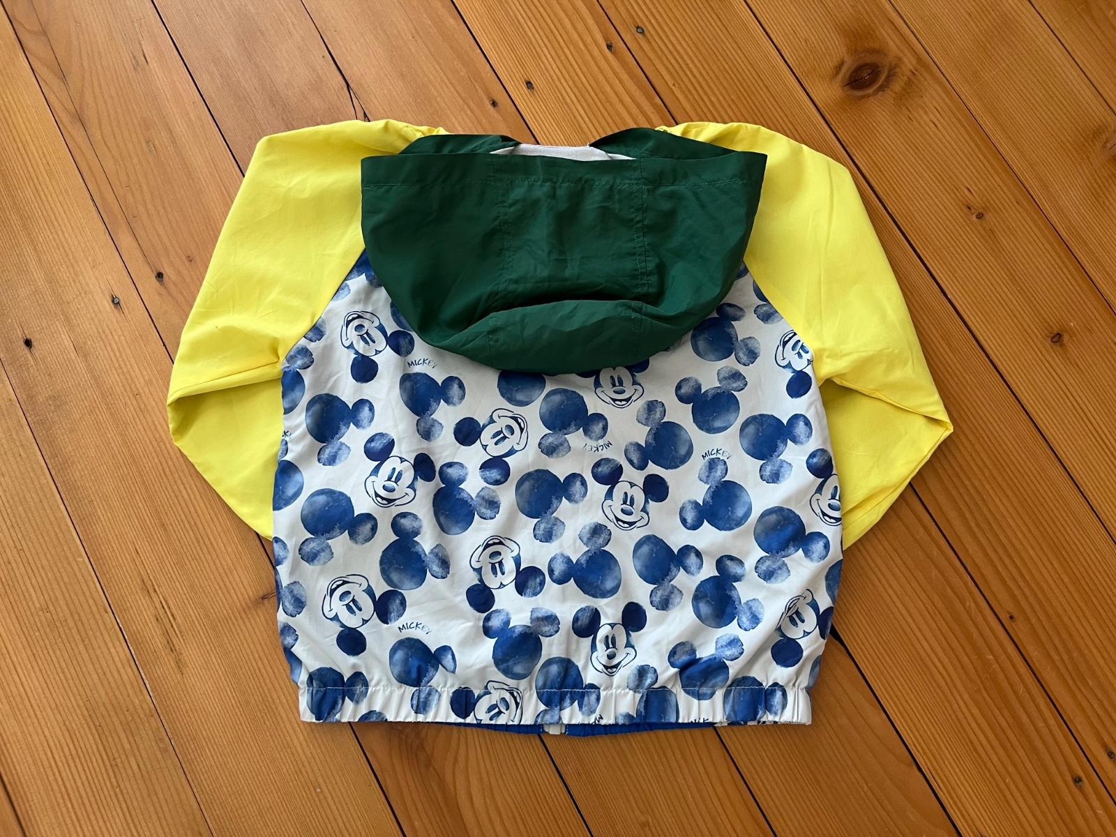Krásna, tenká, veselá bundička podšita bavlnou s motívom Mickey Mouse.