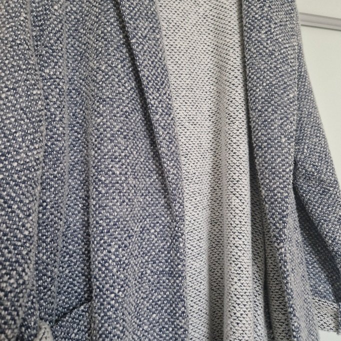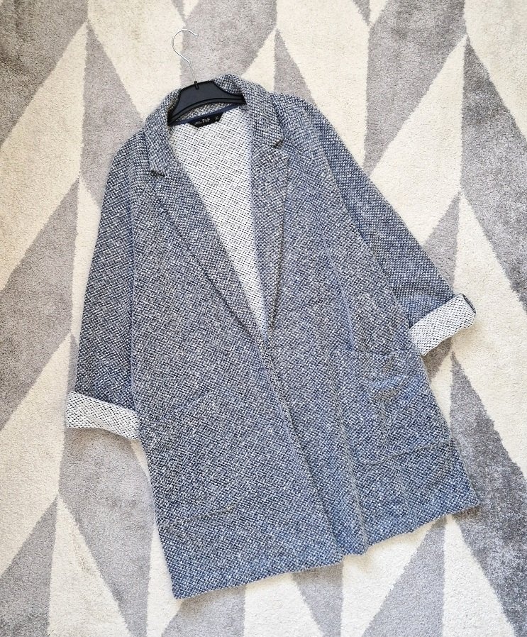 Veľmi zachovalý a bez akýchkoľvek kazov. Nepodšitý jednovrstvový jarný kabátik s rukávmi padavého strihu zn. F&F. Bez zapínania. Rukávy sa dajú vyhrnúť na ľubovoľnú dĺžku. Veľkosť M. Materiál polyester. Celková dĺžka 84cm.
