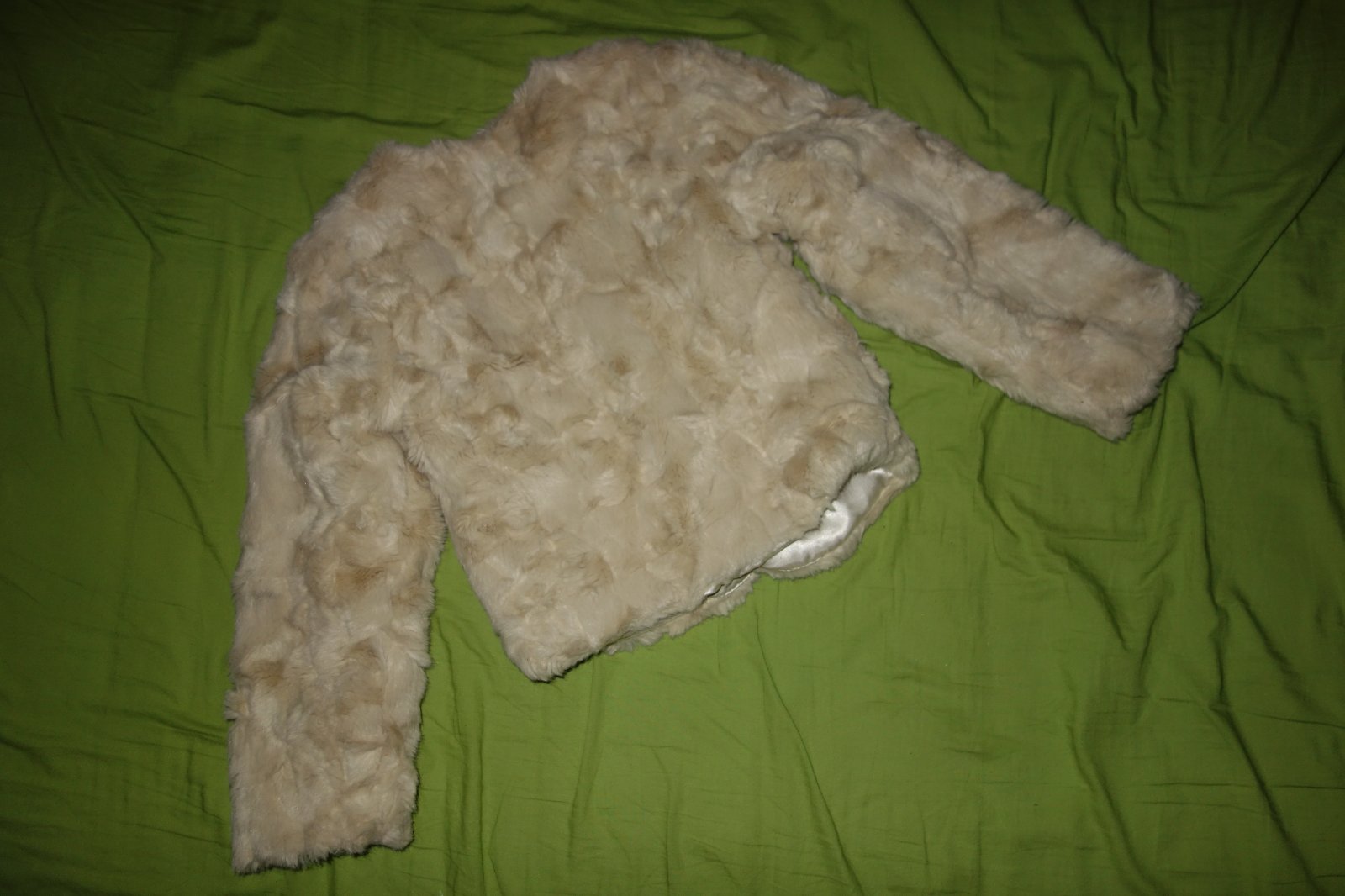 Krasny kabatik z umelej kozusinky vo vybornom stave. Je tak na prechod/do miernej zimy. Zapina sa na hacik pod krkom.