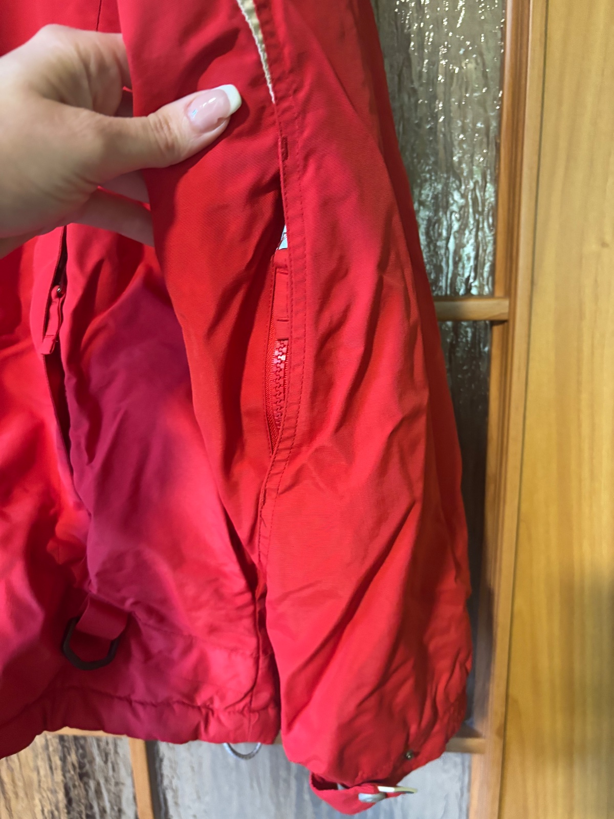Známky nosenia jedine na rukávoch trochu vidieť na manzetach Je vyprata Ochrana proti snehu vnútri s gumou Vid foto Na fotke je rukáv ale veľmi nevidno že je trisku ina farba z nosenia Cena je pre...