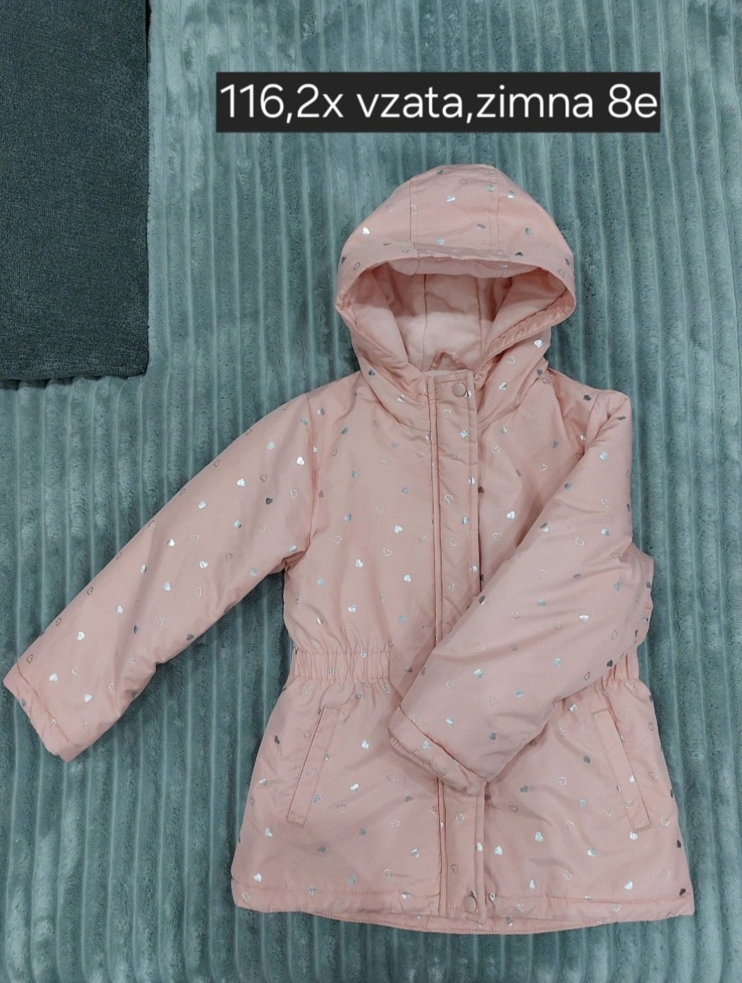 Dobry stav, povodne bola so striebornymi srdieckami, ale tie takmer vsetky sa vyprali, niekde su pozostatky (vid foto), znamky nosenia vidno na koncoch rukavoch, na kapuci maly fliacik, je zateplen...