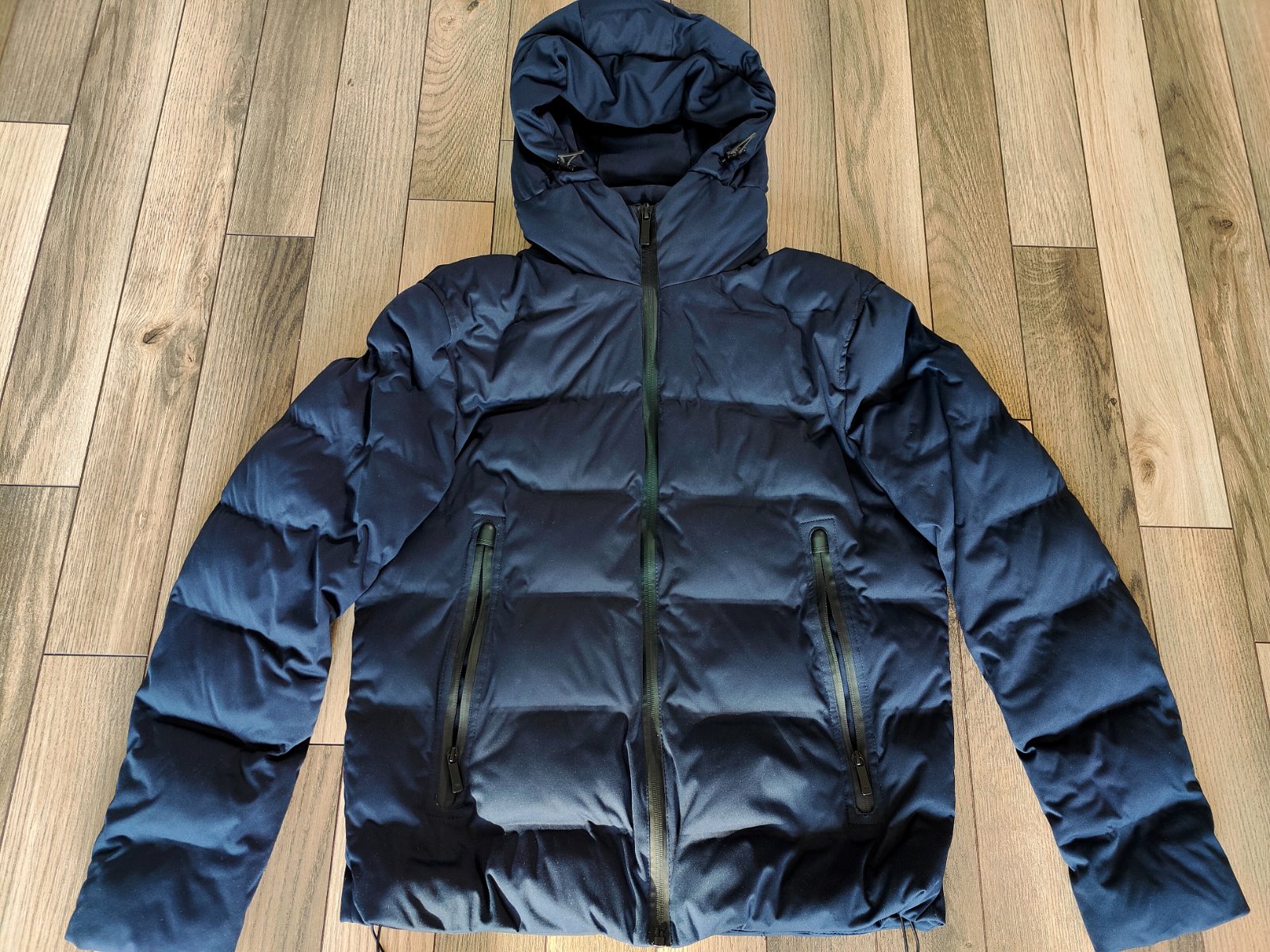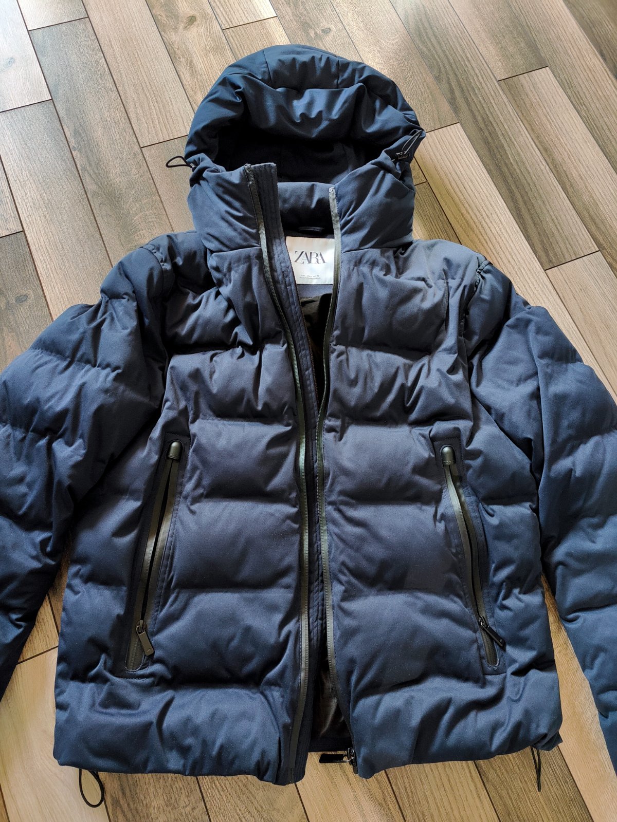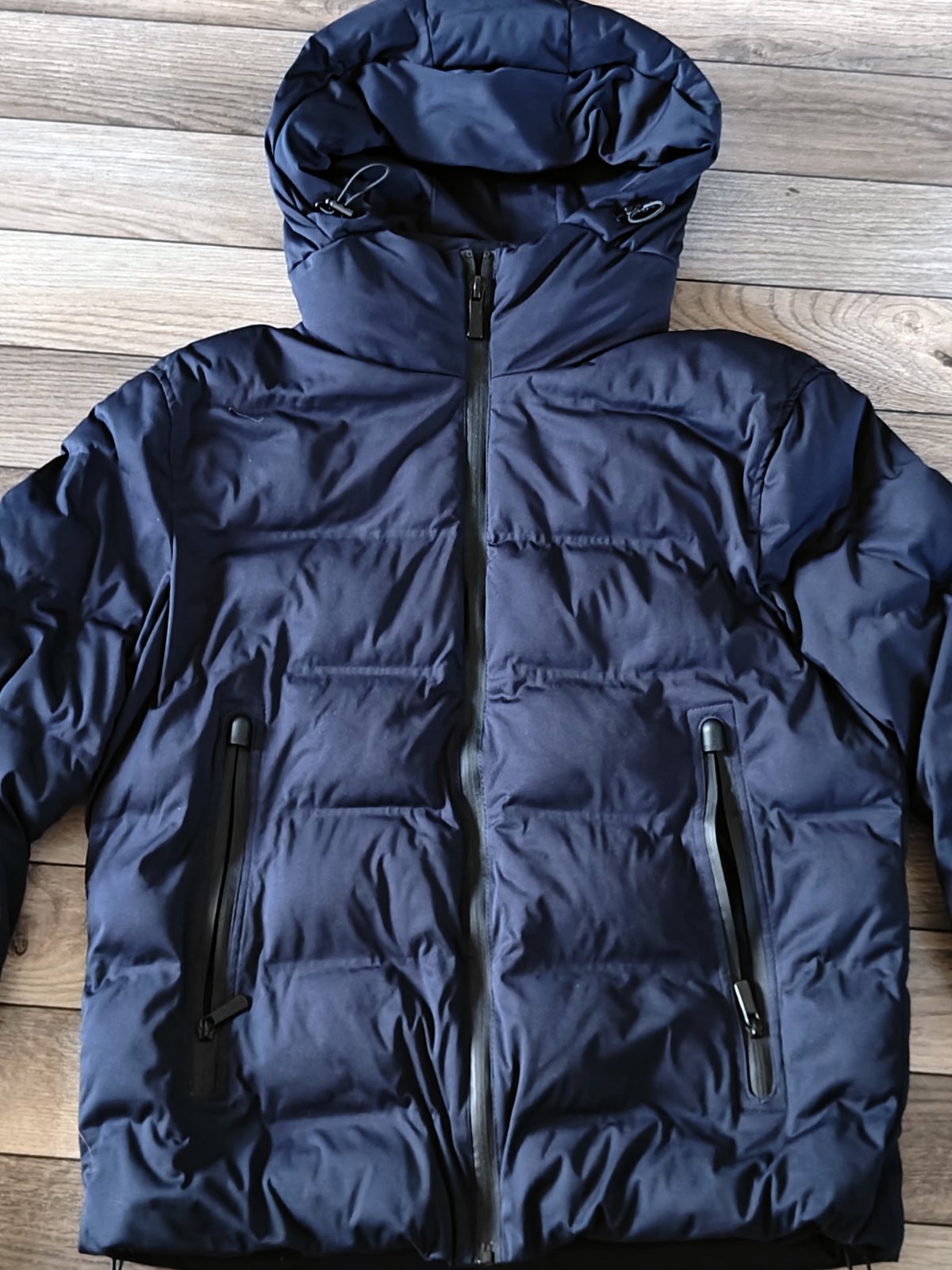 Pánska/chlapčenská elegantná bunda vo veľmi dobrom stave, 2x oblečená. Veľkosť:L, rozmery: dĺžka 68cm, prsia 122cm, ramená 50cm, rukávy 67cm. Na bokoch vrecká so zipsami, dole sa dá sťahovať a prispôsobovať. Farba je tmavomodrá NAVY. Cena :30€+poštovné, v rámci BA osobne dohodou.