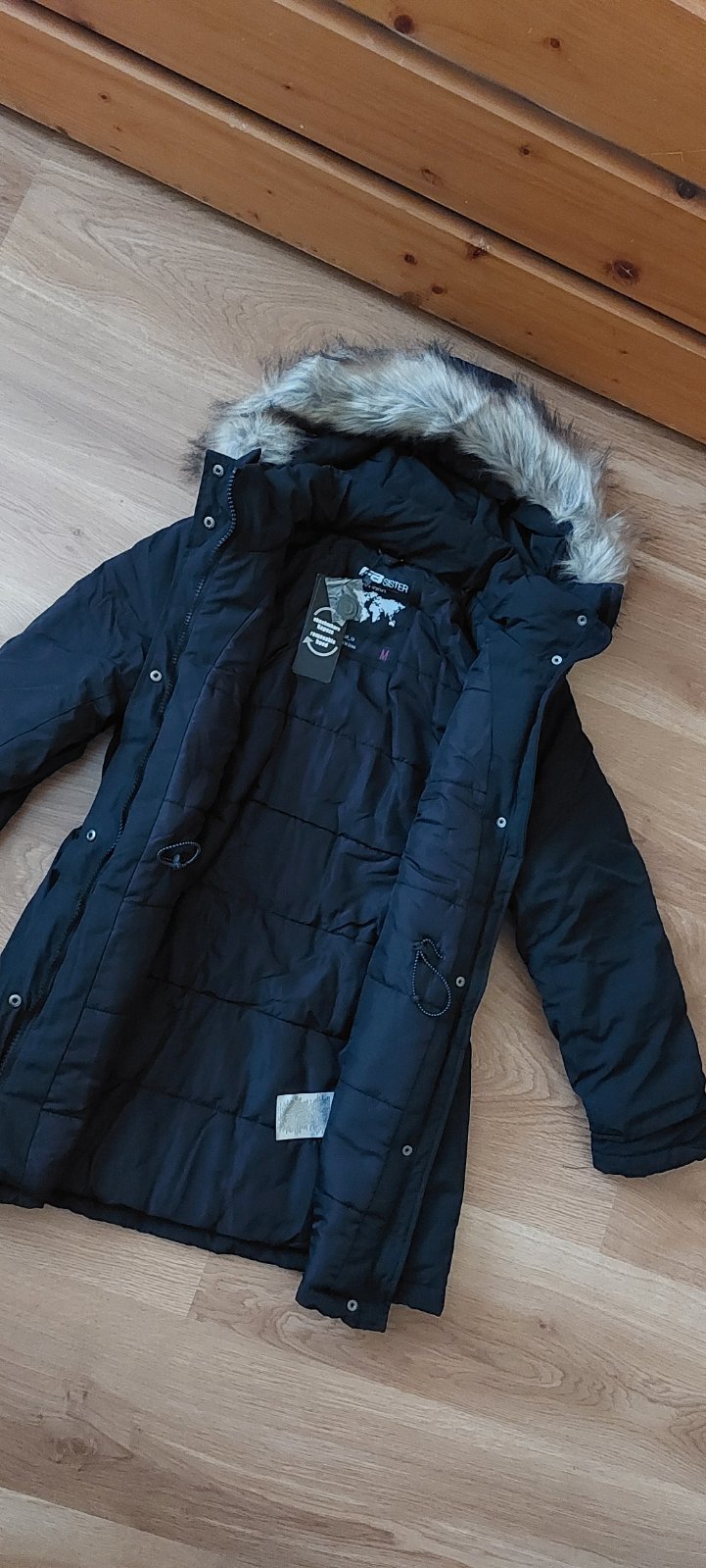 Čierna zimušná bunda New Yorker, vhodná na vyššiu postavu.