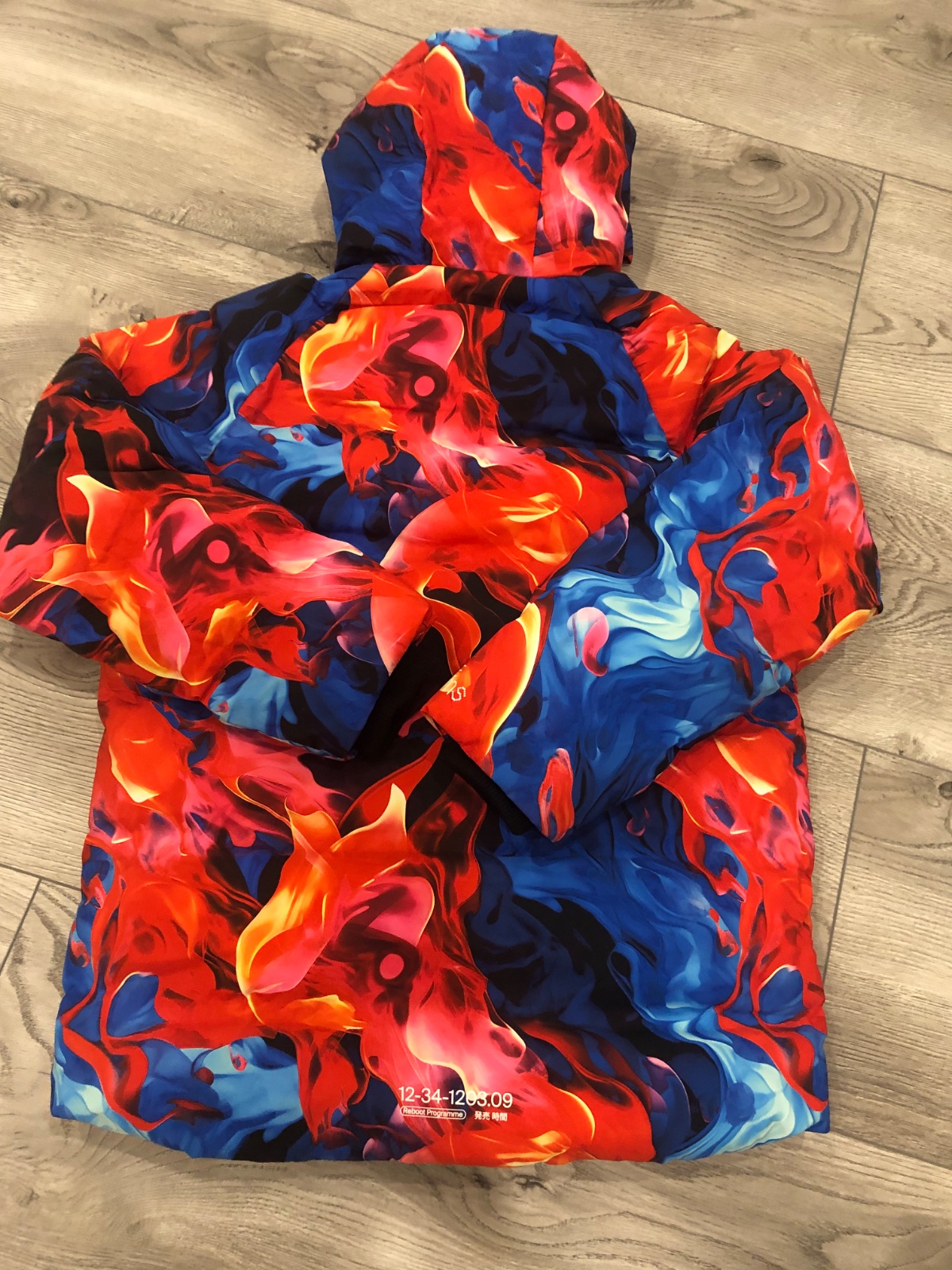 Nosena v super stave.Bunda nemá žiadne poškodenia ako fľaky alebo diery,po bokoch patenty,veľ 152,je väčšia ,viď miery Dl102,šírka 50,rukáv spolu s patentom 59,v