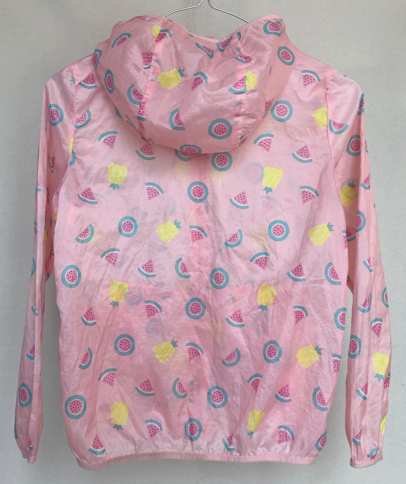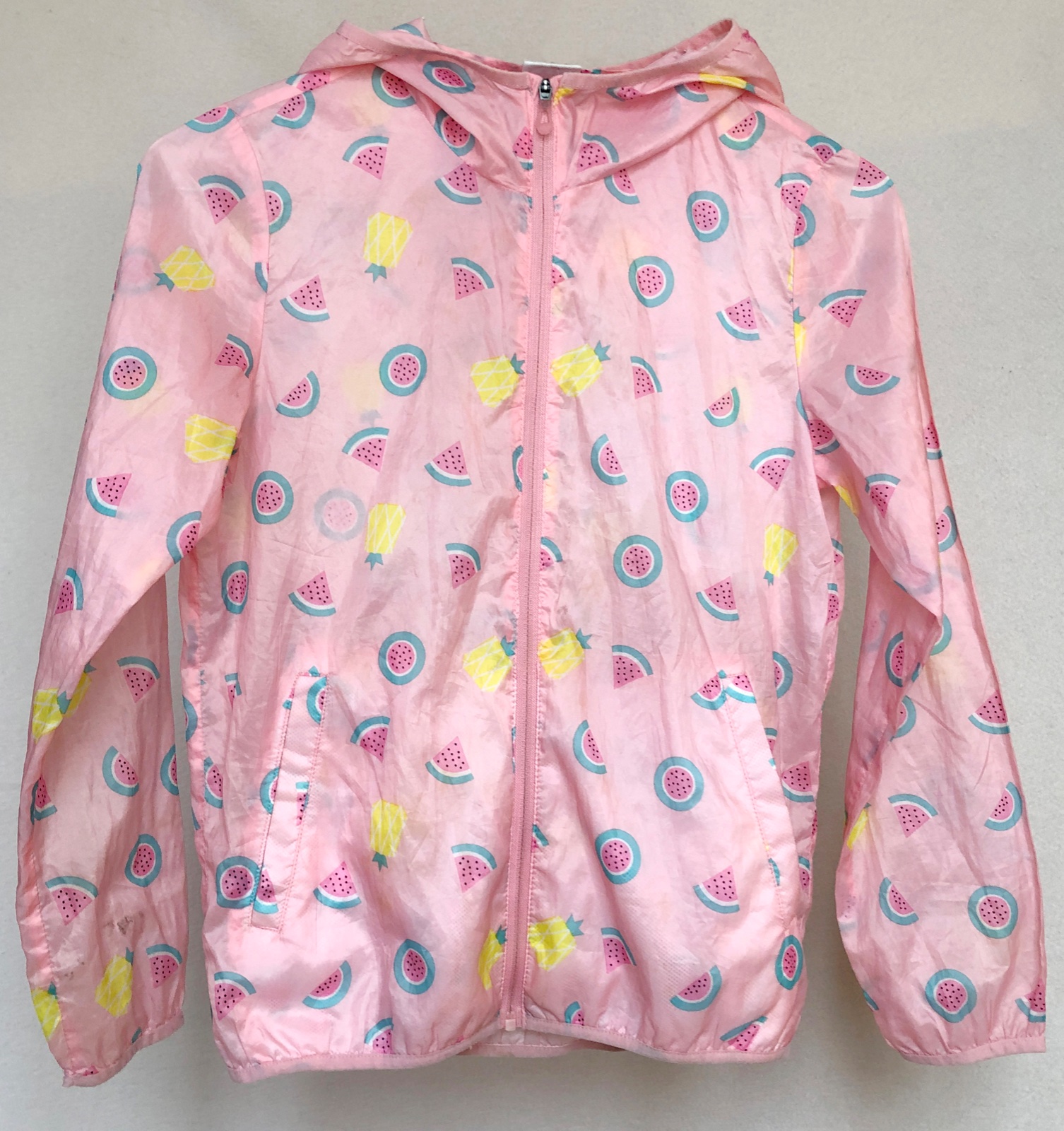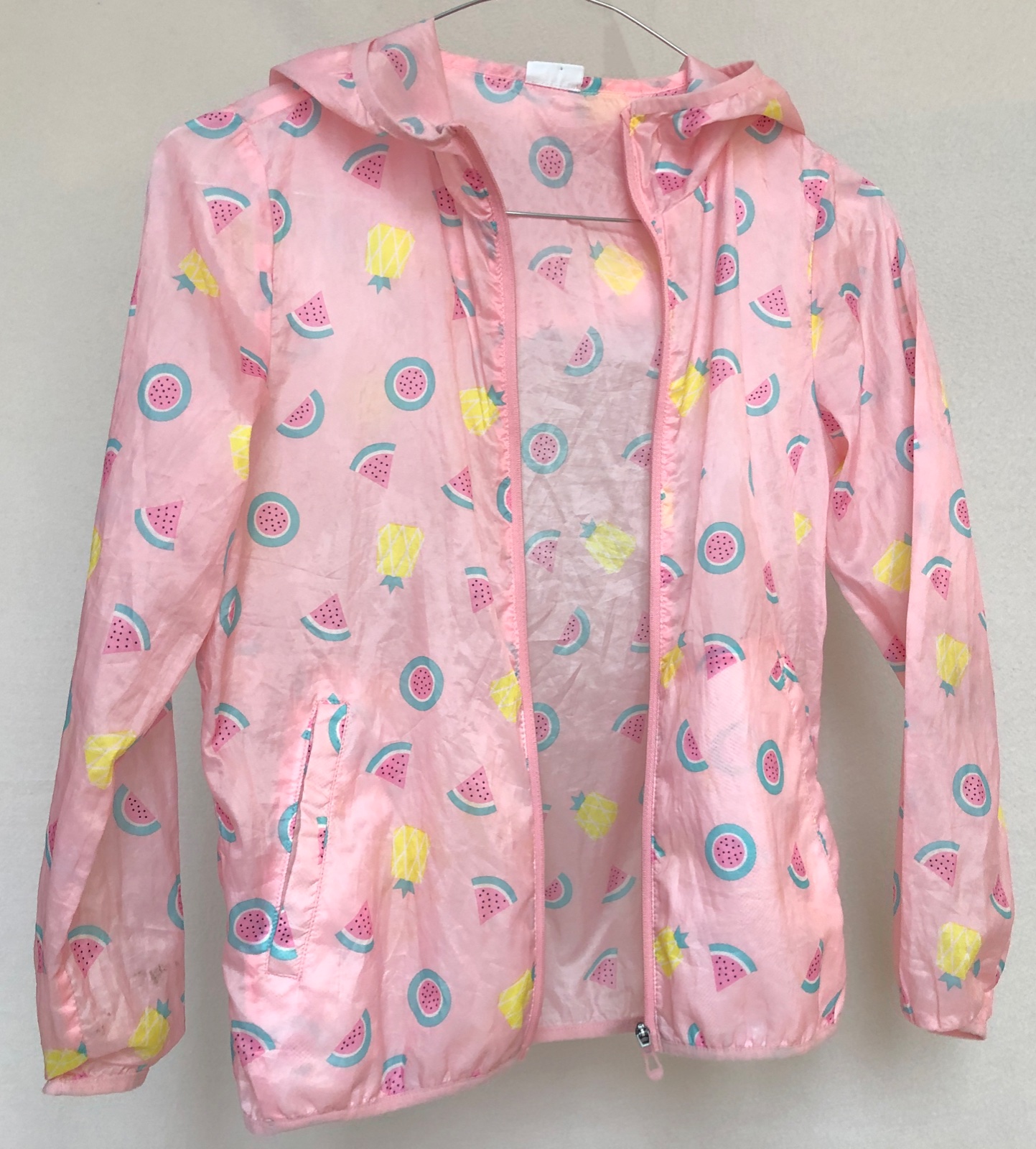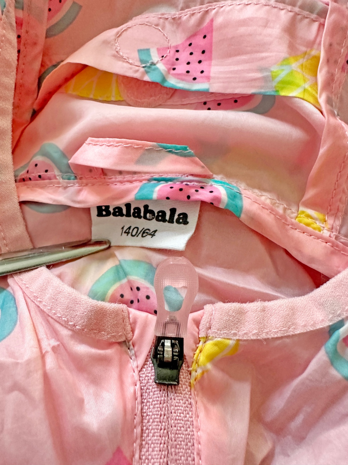 Najjemnejšia, najľahšia, najcukríkovejšia bundička na svete :). Má perleťovo-hodvábny lesk a na dotyk je jemnejšia ako hodváb. Bunda je skôr na leto, je naozaj len ako taký vánok, na tričko, tielko, v prípade zmeny počasia alebo na večer. Zapínanie na zips, vpredu sú vrecká na ruky, v kapucni je vrecko so suchým zipsom, do ktorého sa dá bunda zložiť. Značka Balabala. Materiál 100% polyesterové vlákno. Pranie v pračke na 30°C. Spodný lem bundy a spodný lem rukávov je lemovaný tenkým elastickým prúžkom. Bundička má aj uško na zavesenie :)