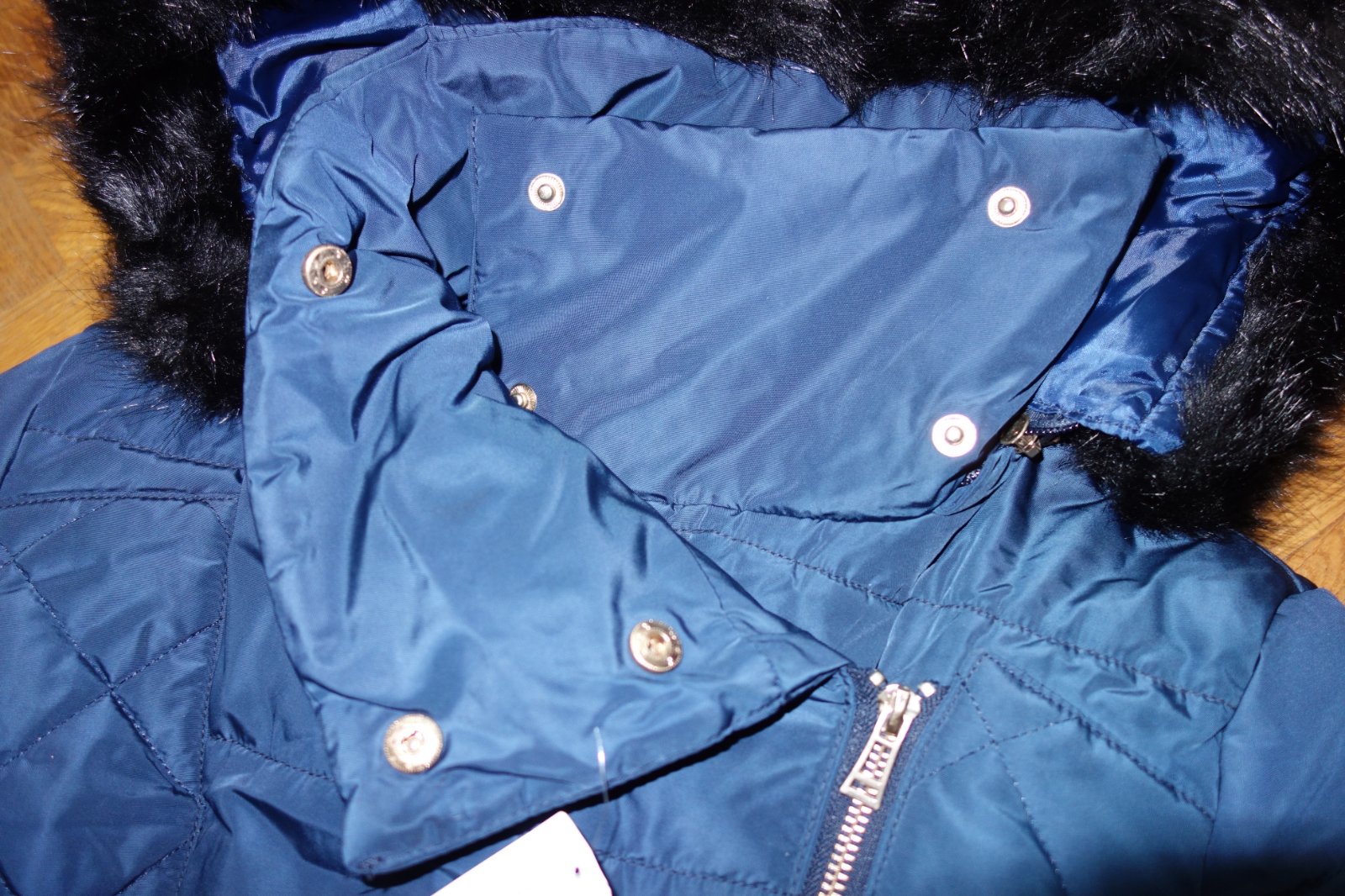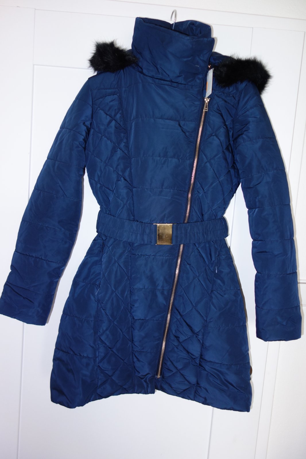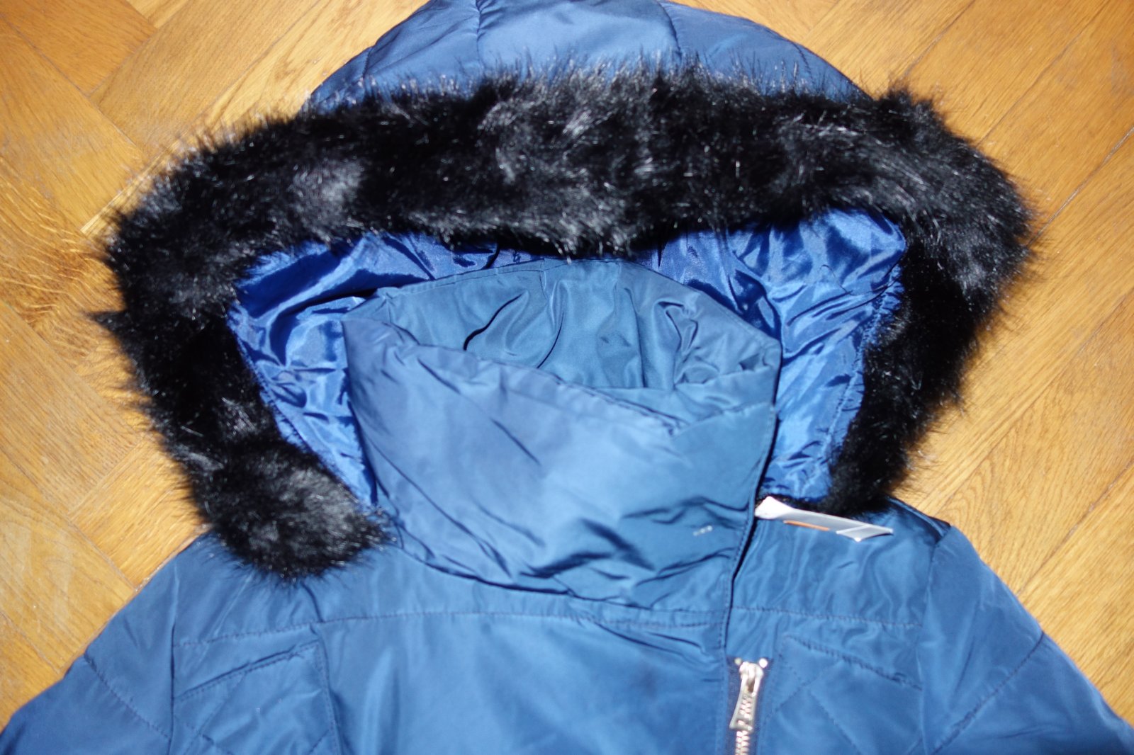 Top stav. Krásna bunda so zapínaním v páse, dve bočné vrecká, odopínateľná kapucňa s kožušinou, zapínanie na zips, golier sa zapína na cvoky. Zateplená kožušinou. Veľký teplotný komfort.