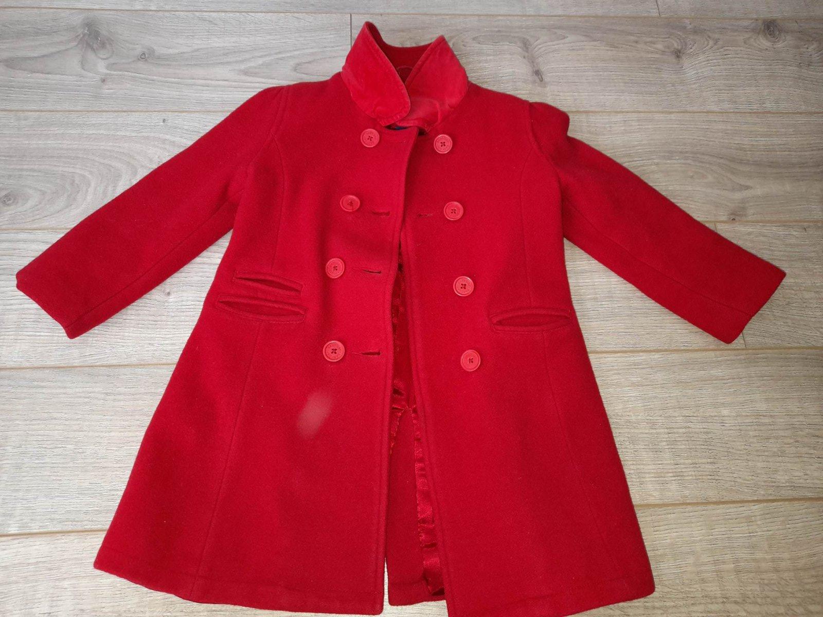 Sýta červená farba. Nosený, no bez poškodení. Je podšity a veľmi teplý. PC 60€.