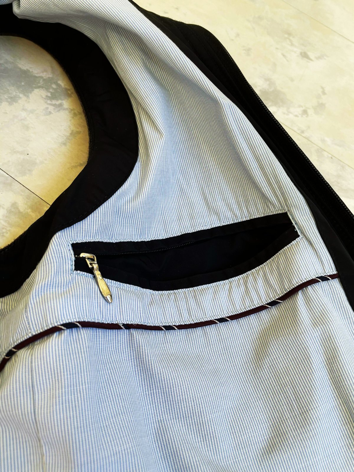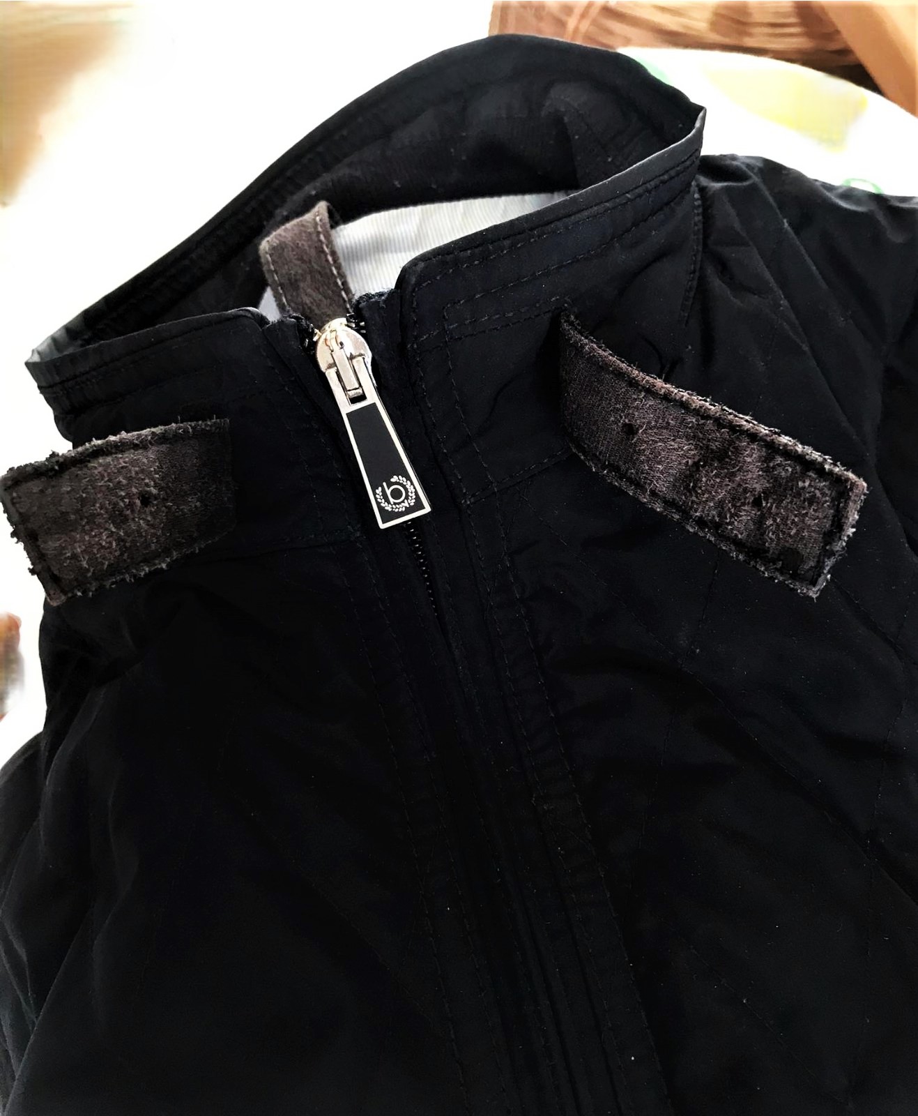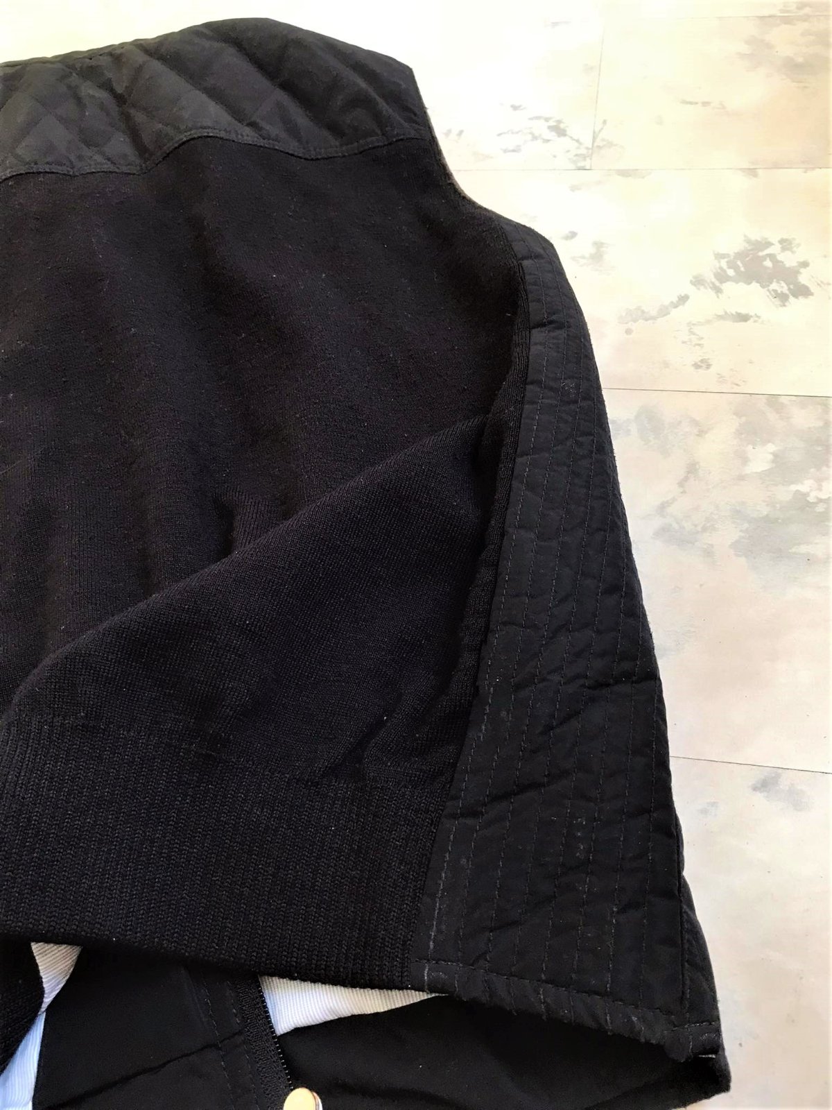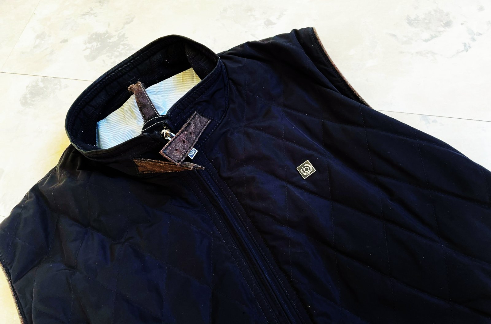 kvalitná značková unisex vesta značky Bugatti s prešívaným dizajnom,zadný diel je prešívané sedlo a úplet - 50% vlna,50% acryl,krásne riešená,podšitá jemným prúžkovaným plátenným futrom,vhodná aj na menej chladnú zimu - do auta,bočné vrecka na cvoky,vnútorné vrecká na mobil,peňaženku a pod,dlžka celkom = 66 cm, šírka = 58 x 2 cm,vrecká,prieramky a na upínačie pri krku je jemne ošúchaná koža - pôsobí to na pohľad dobre - ako vintage obnosené a nevadí to esteticky v nosení