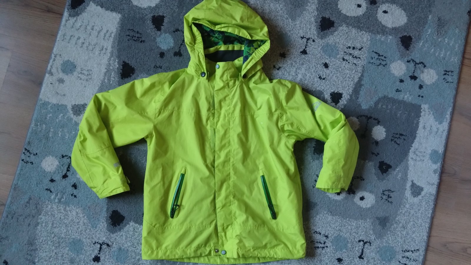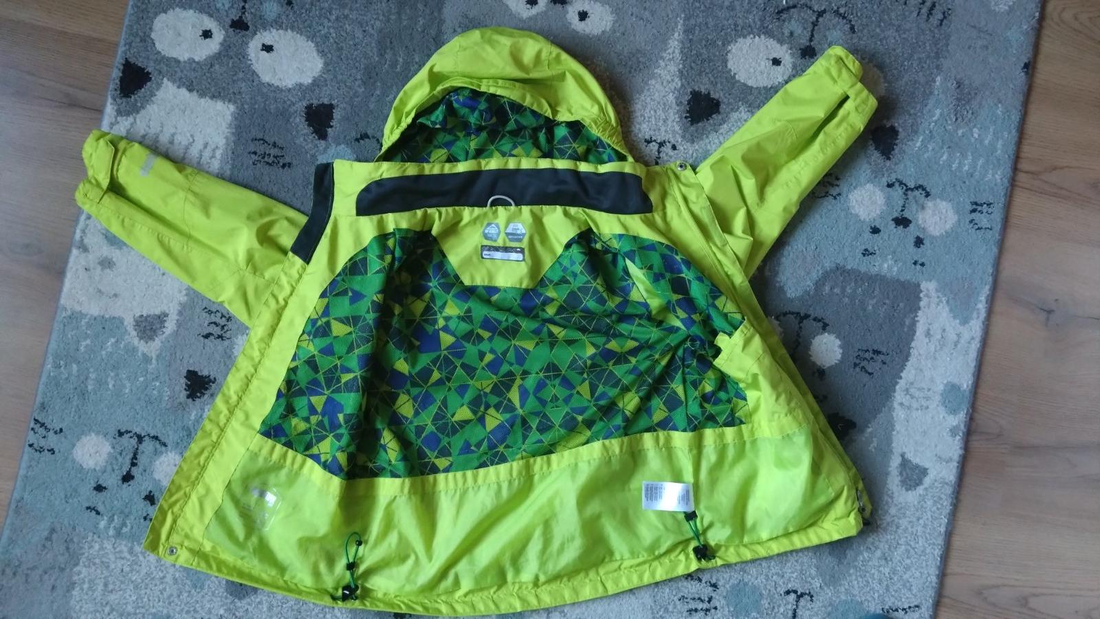 Znesie malý dážď. Odnímateľná kapucňa. Vhodné jar/leto. Nosené. Bez poškodenia
