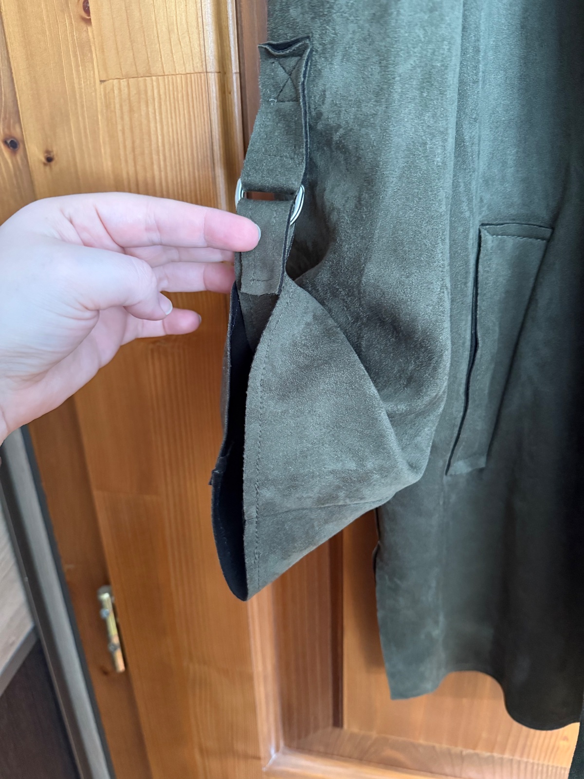 Predám ľahučký kabátik (trenčkot) zn. Stradivarius veľkosť L veľmi málo nosený. Rozmery celková dĺžka kabátu chrbát 80cm, dĺžka rukáva od ramena 64cm.