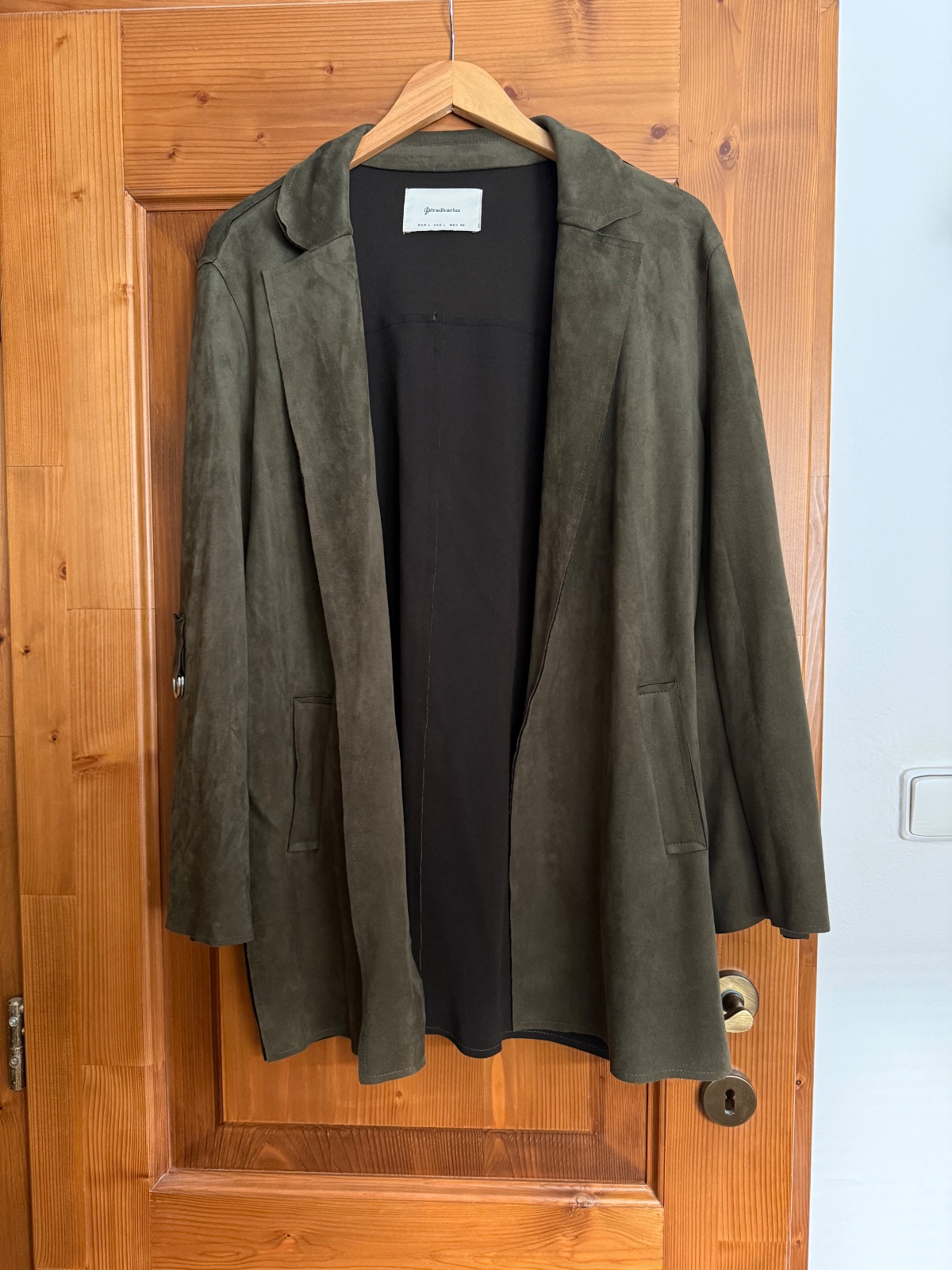 Veľmi pekný prechodný kabátik v super stave bez poškodeni...veľ.pisana L ale kľudne aj M..je to taky mierne overzsai strih...mne už bohužiaľ veľký.. preto predávam...
