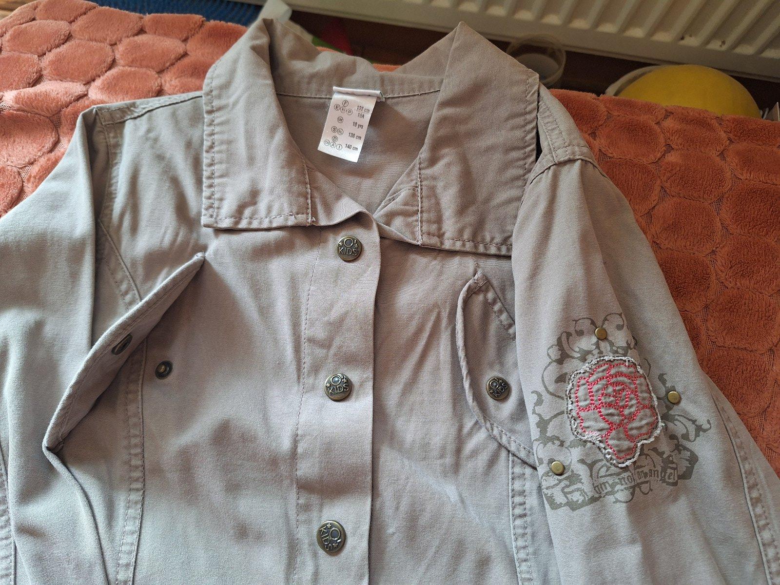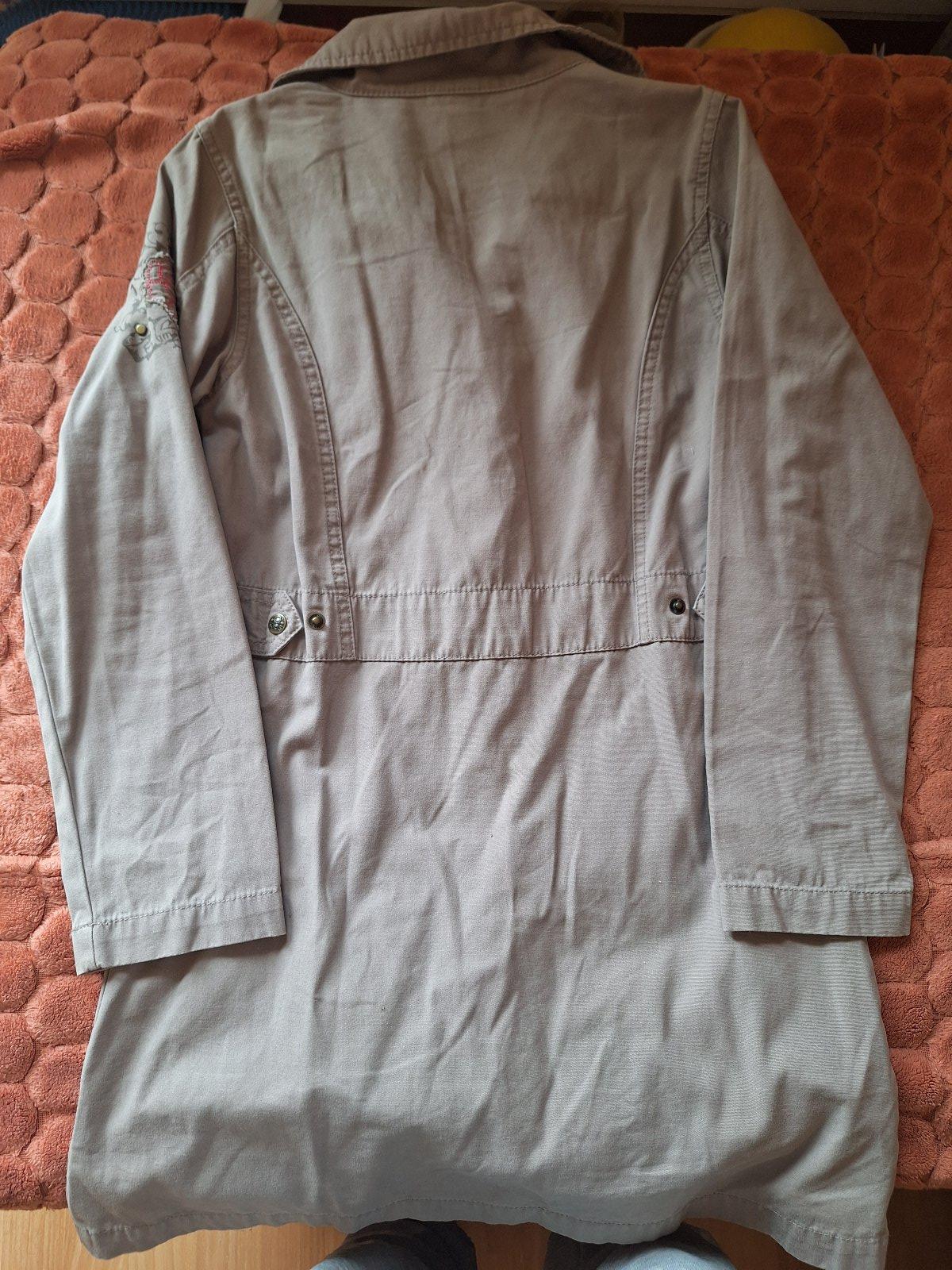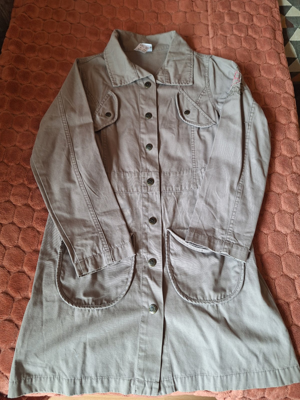 Predám dievčenský tenký jarný kabátik, béžovej farby, zapínanie na cvoky, vrecká, na ľavom rukáve má výšivku, zachovalý, bez poškodenia, veľ. je písaná 10 rokov, dcéra ho mala ako 8-9 ročná, zachovalý, miery dĺžka od chrbátika 73cm., pod pazuškami cez hrudník 39cm, dĺžka rukáva od krku 59cm, dĺžka rukáva od pleca 51cm. cena 8,.€ už aj s poštovným