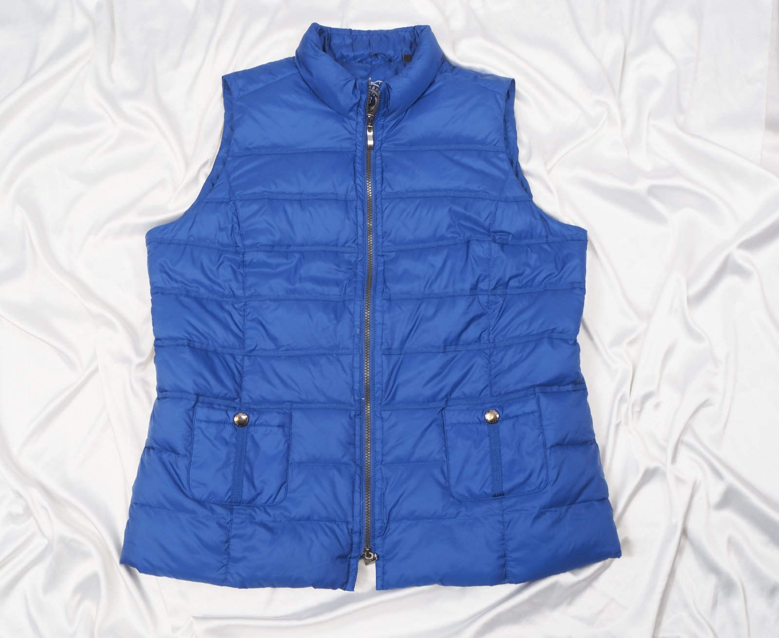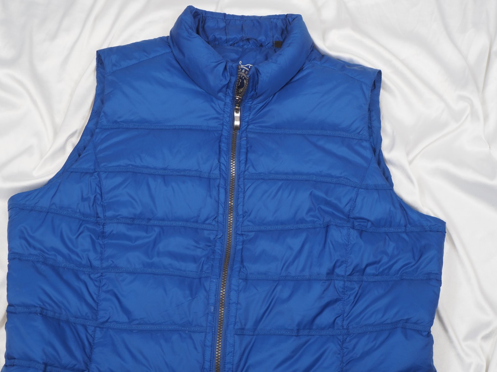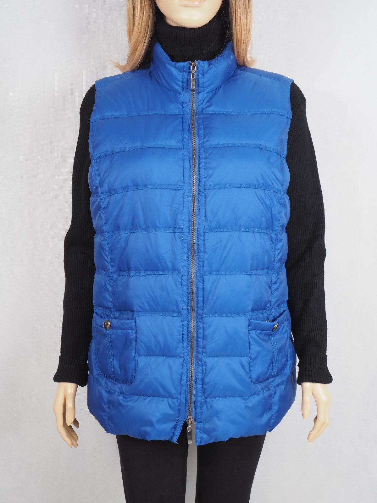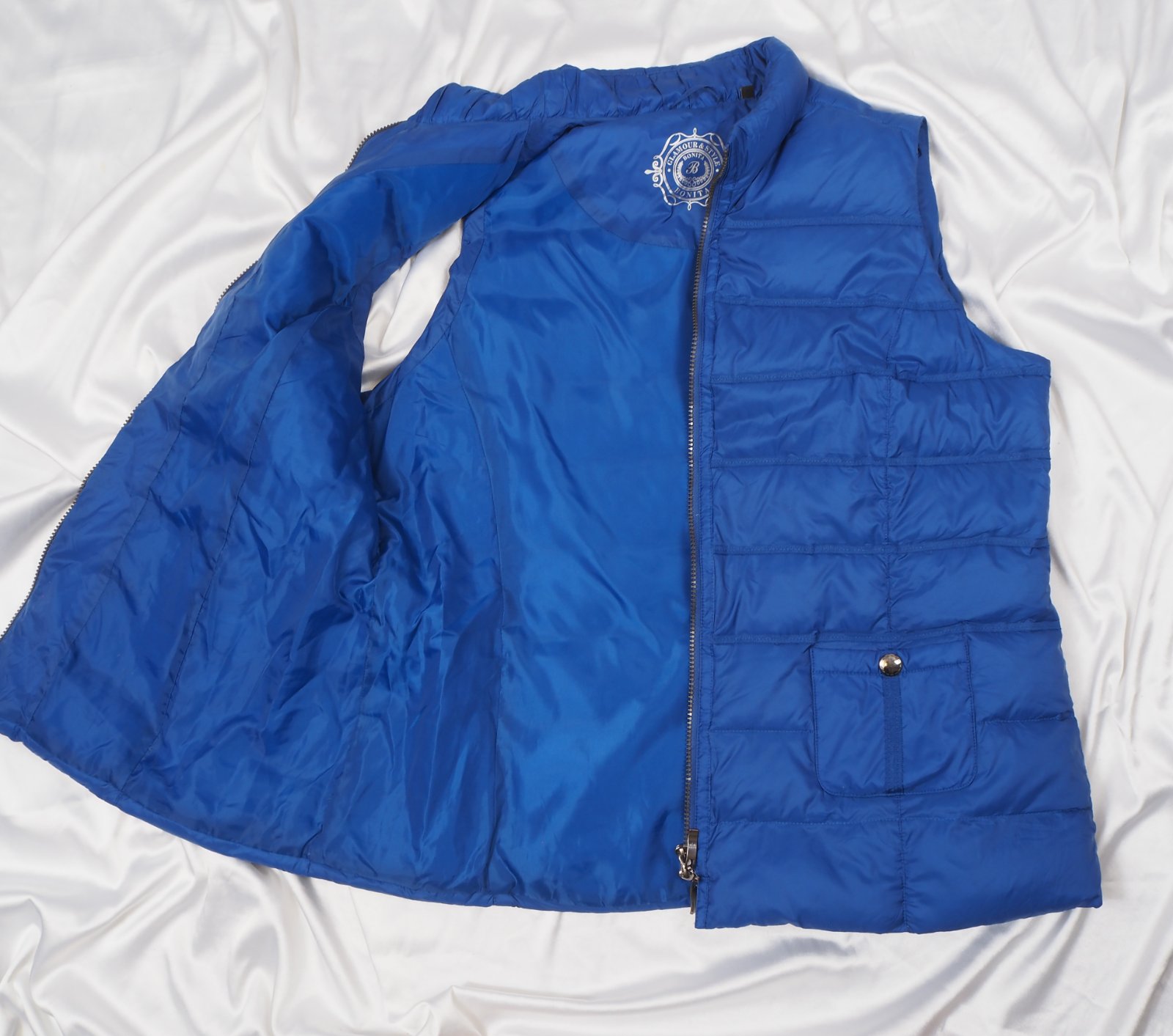 Kvalitná oteplená vesta, zapínanie na zips, vredu vrecká, materiál 100% nylon, vyplň kačacie perie, super stav.