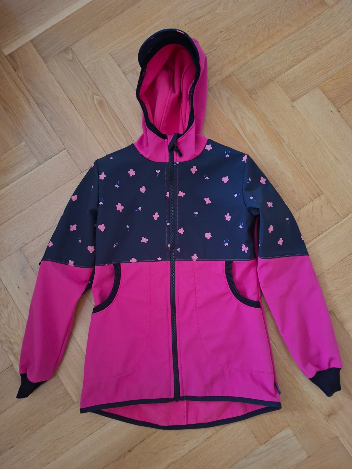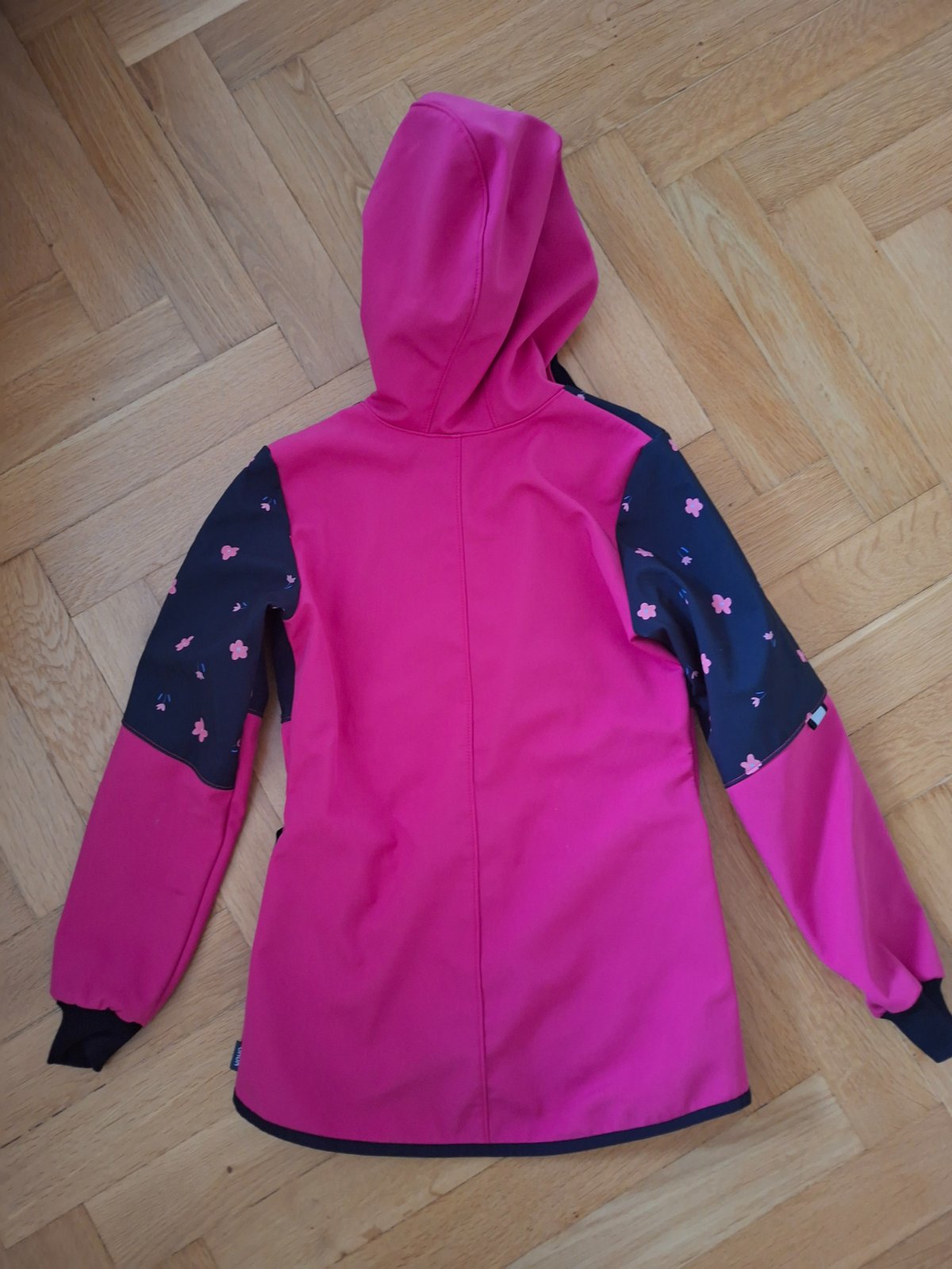 Softshellovy kabatik s fleesom značky Unuo v top stave, nepoškodený, funkčný, nepremokavý, vetruvzdorny, zatepleny, veľkosť 128/134, dĺžka 62 cm, šírka 42 cm, dĺžka rukáva 57 cm.