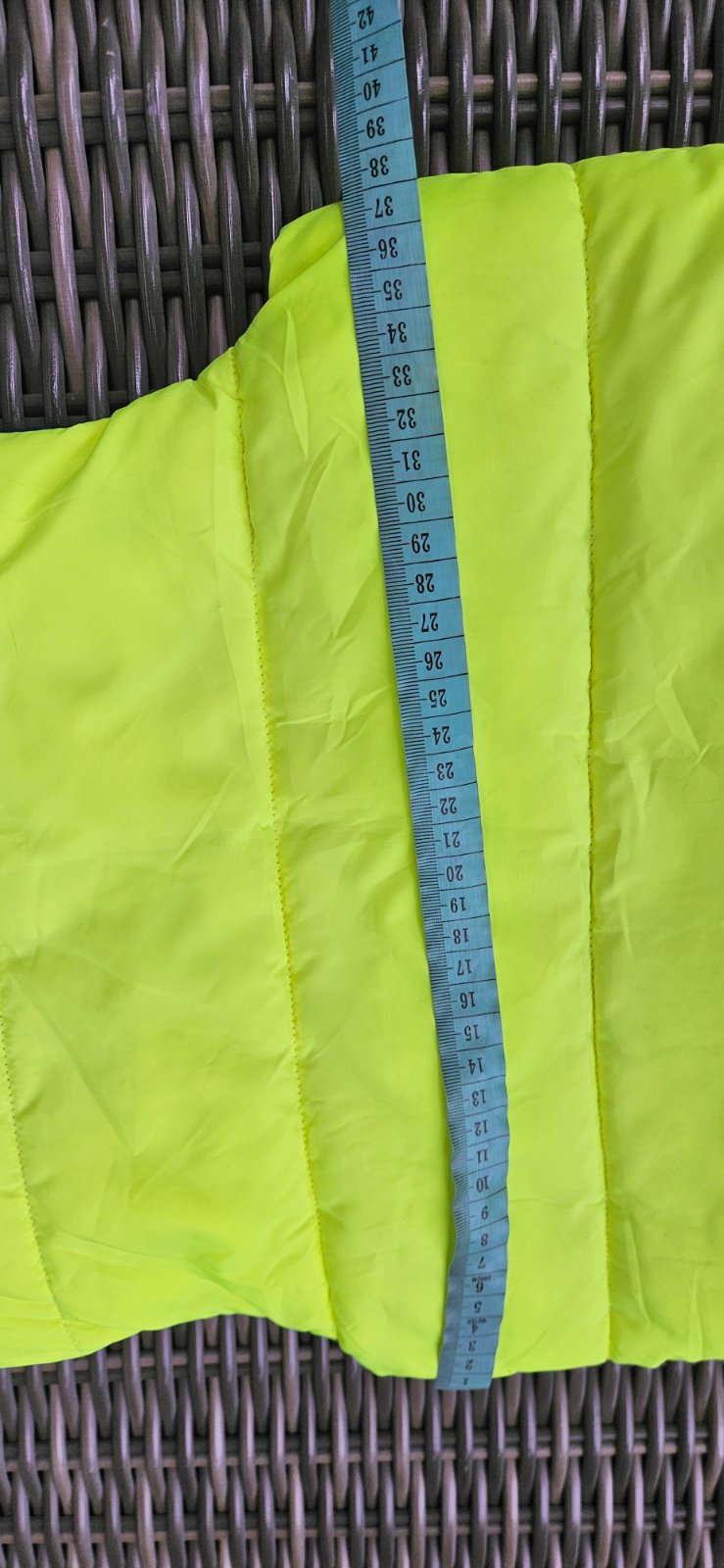 Obojstranna vesta DKNY v. 104 vo vybornom stave bez flakov, neonova farba je krasne intenzivna. Pri zipse sa odlepuju pismena - na foto. Stitok s velkostou nie je, kedze je obojstranna, ale rozmery su na foto. Cena 16,90 Eur + posta