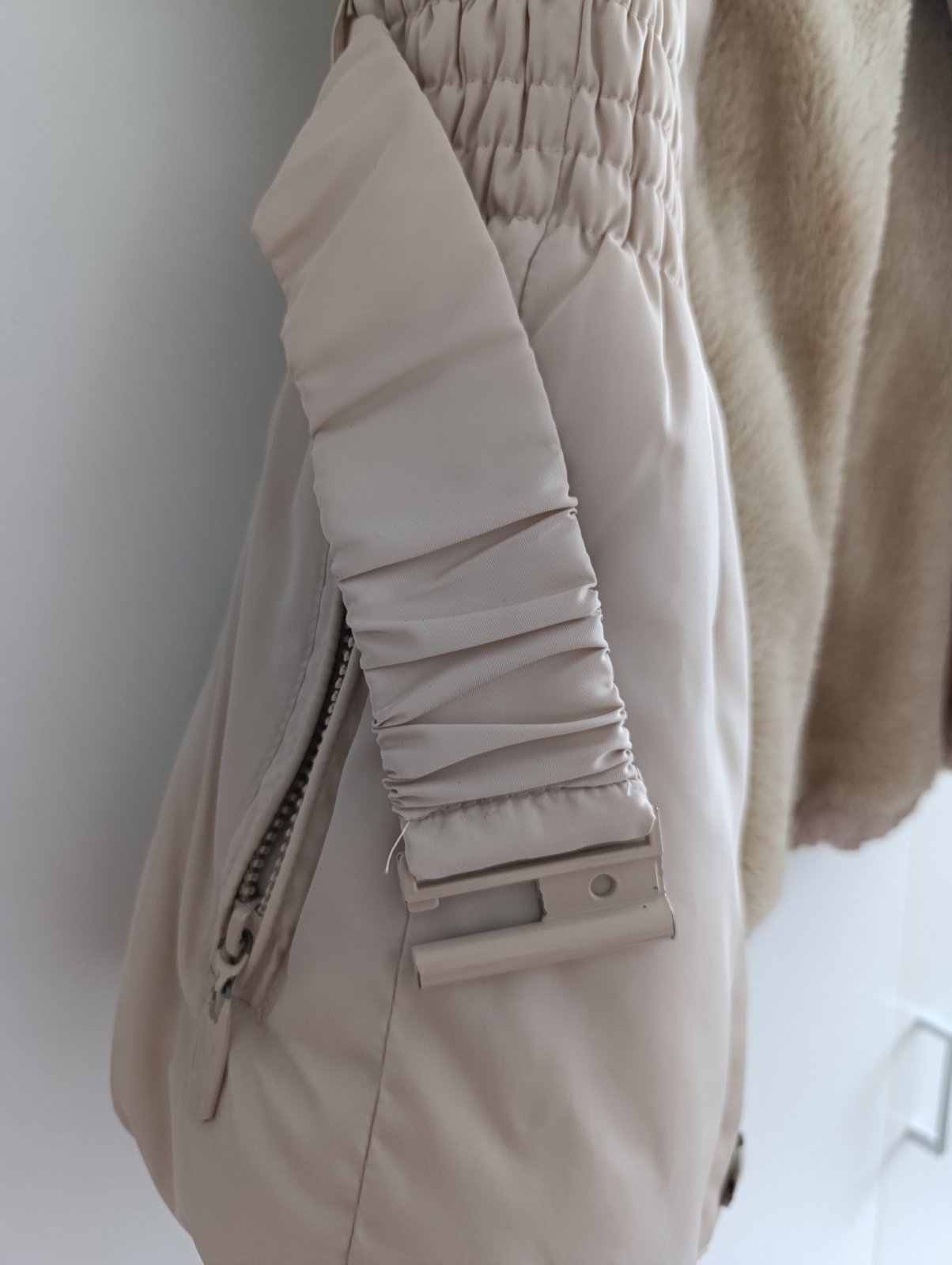 Krásna smotanová kožušinová vesta na veľkosť M/L. Na boku vrecká. Zapínanie na háčiky. Dĺžka 76 cm a prsia 51 cm.