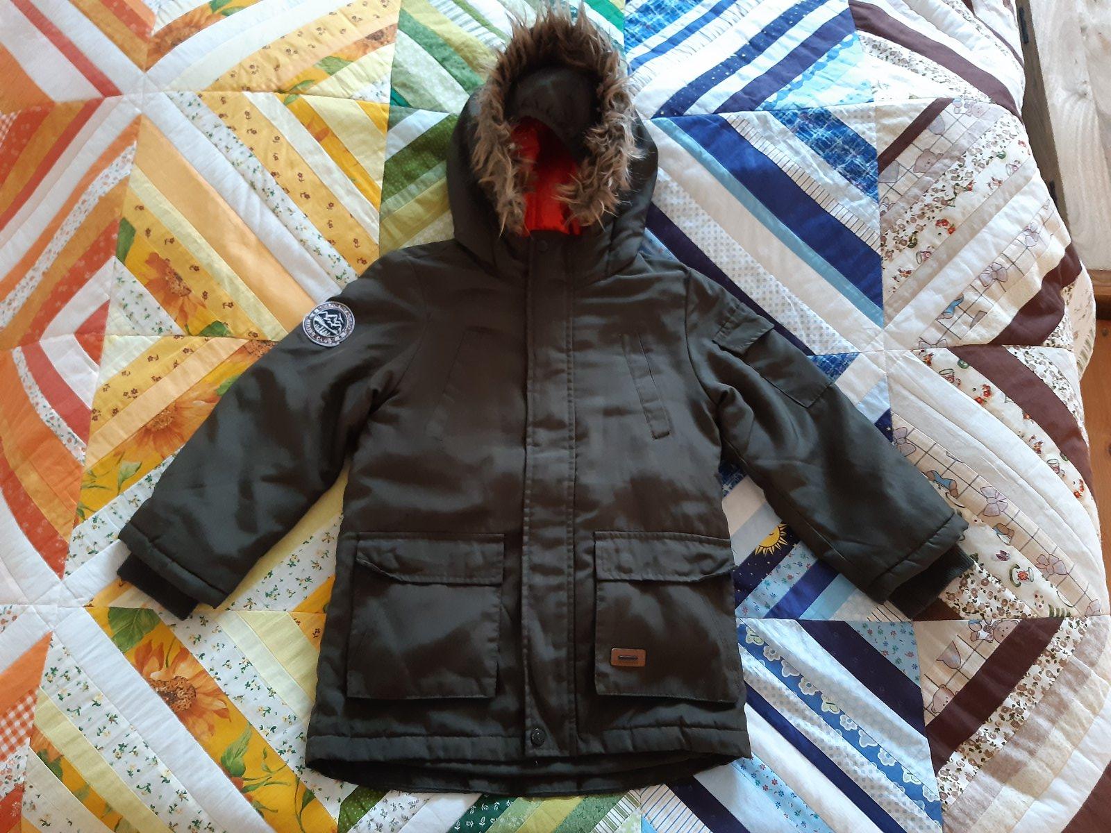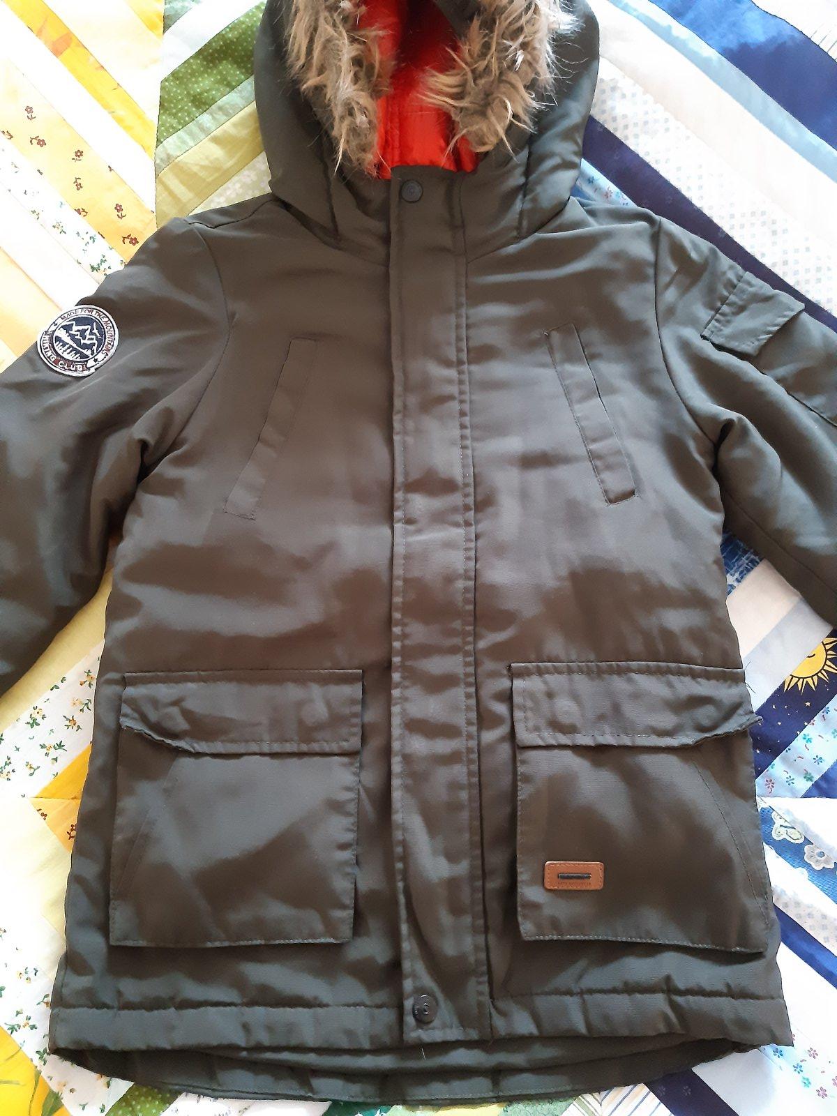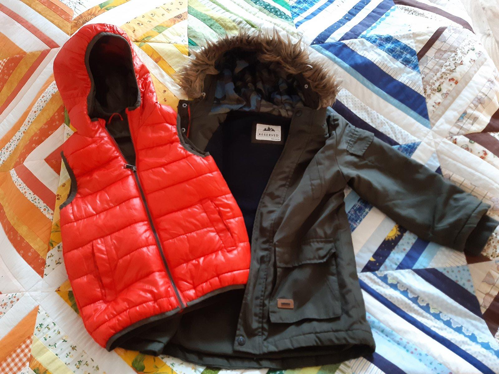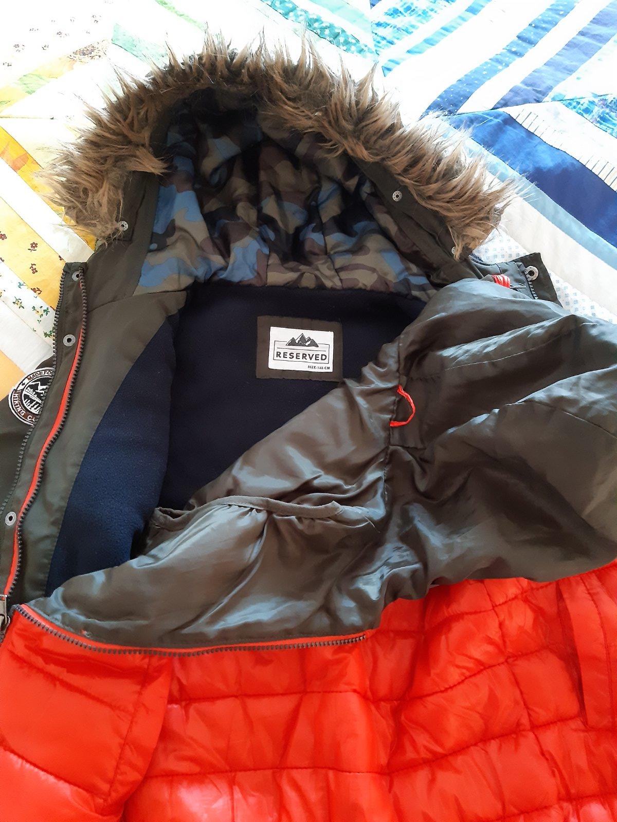 Prakticka zimna bundicka, z ktorej sa da urobit po vybrati samostatne nositelnej presivanej vesty s kapucou, jarna bunda s kapucou, ktora je tiez jemne vatovana. Cica na kapuci je odopinatelna. Nositelna v pohode aj vo velkosti 128. Super stav bez poskodenia.