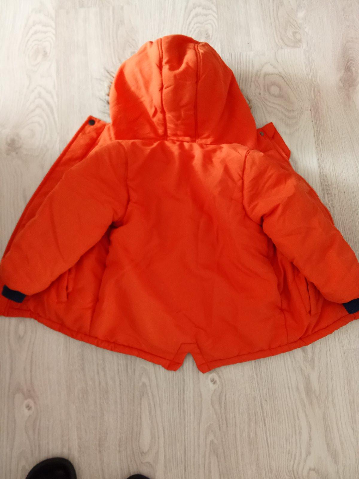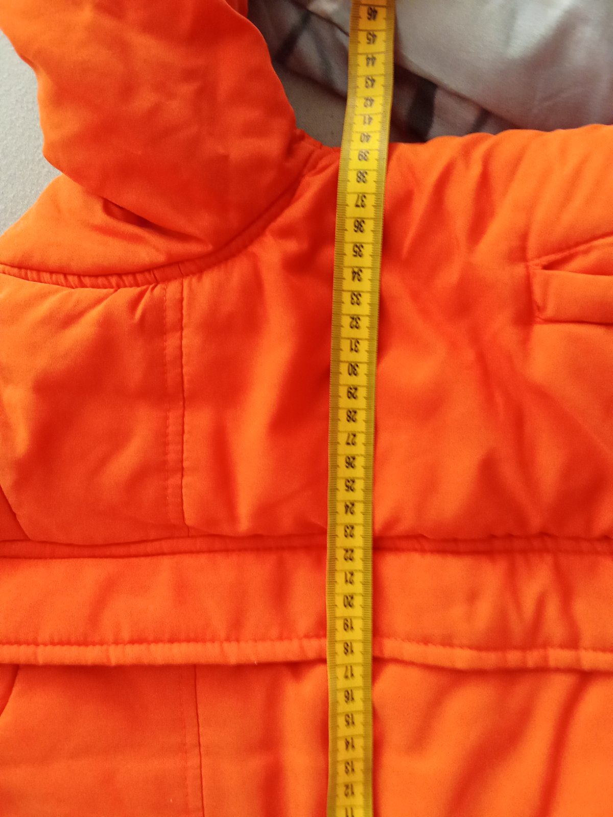 Je v dobrom stave.Farba je sýto oranžova.Velmi pekná.Mne ju nosil chlapec.No myslím že sa hodí táto farba aj pre dievčatá.V prípade záujmu píšte.Rada ešte niečo pomeriam , odpoviem.Zo zadu je dlhšia.Odmerala som aj z predu aj zo zadu.Velmi teplučká.