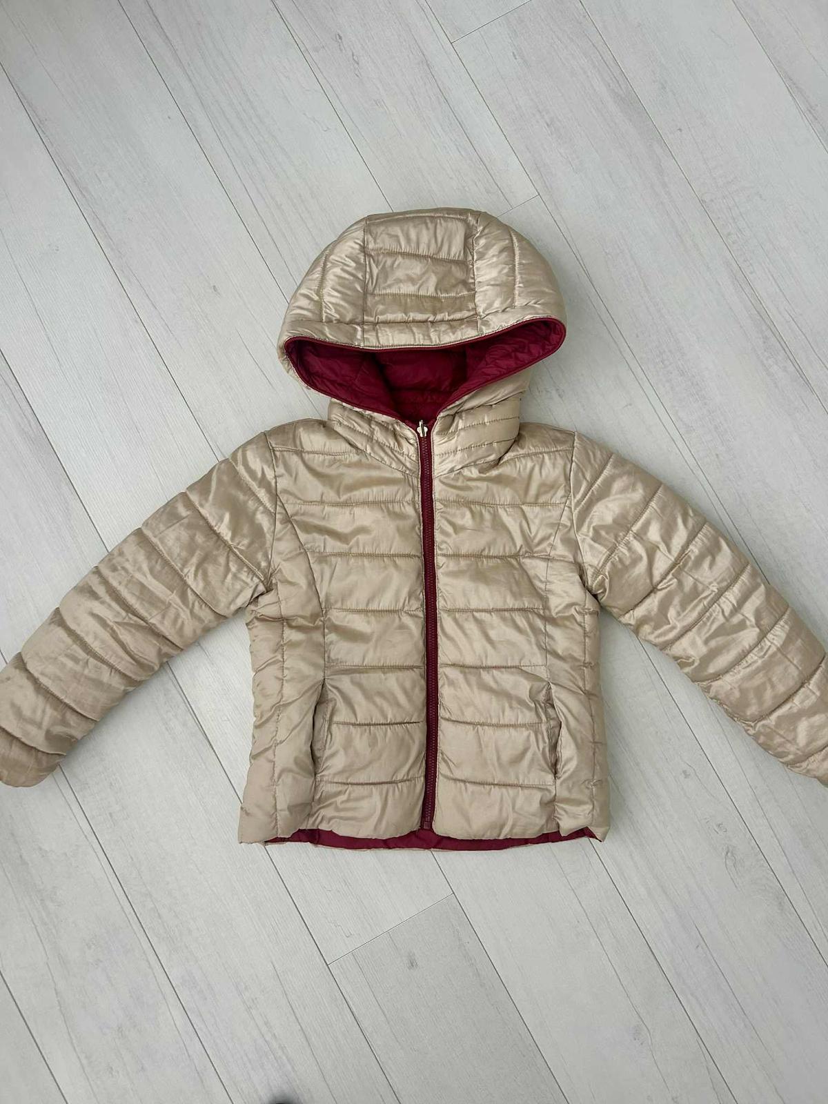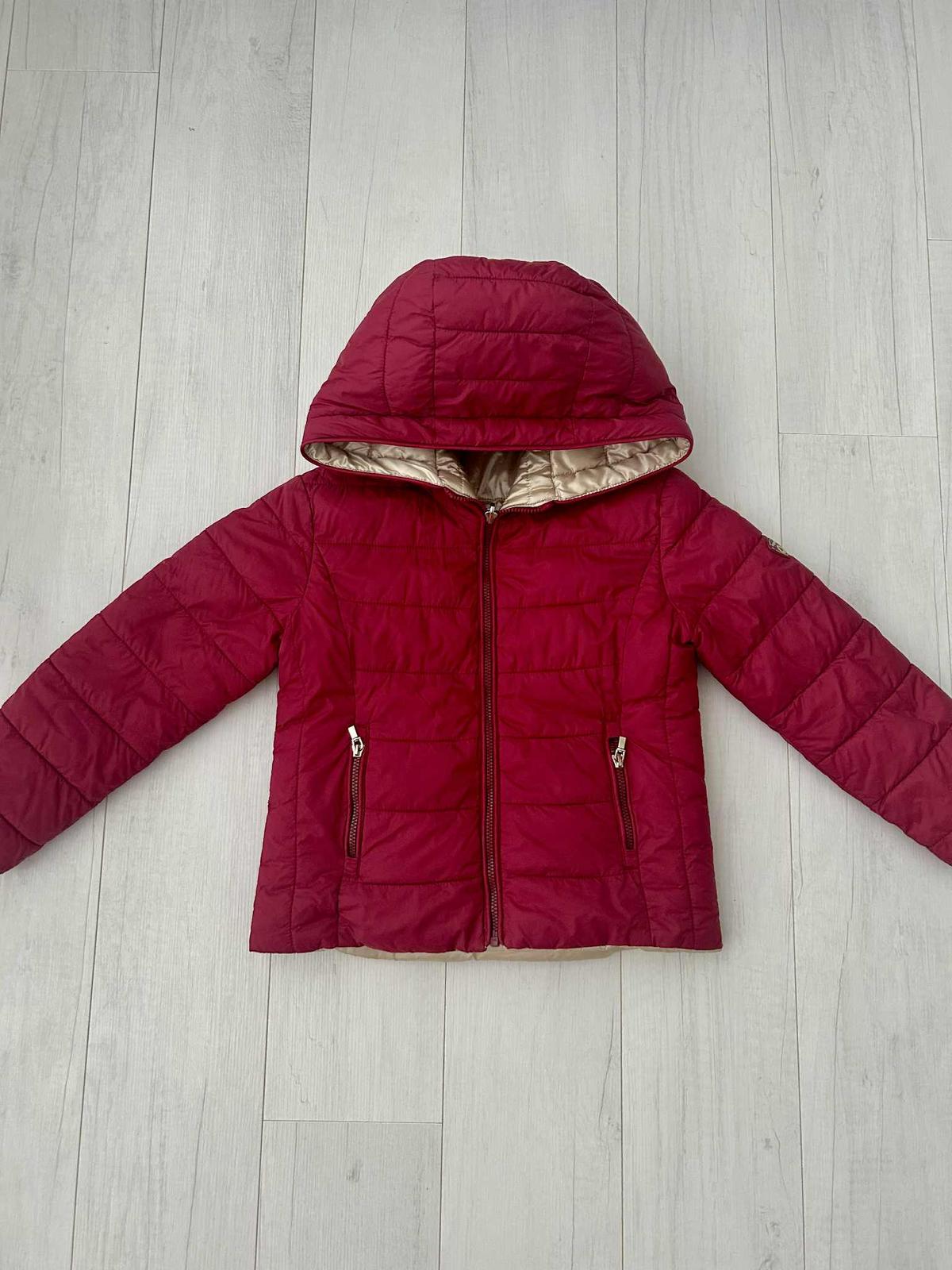 Krásna tmavomodrá bunda s odnimateľnou kapucňou,Zn.Mayoral.Na slnku sa pekne leskne do oceľovo modra.Kožušinka sa dá odopnúť,výhoda pri praní sa nezničí.Zapínanie na zips a cvoky.Pri pazuške je zat...