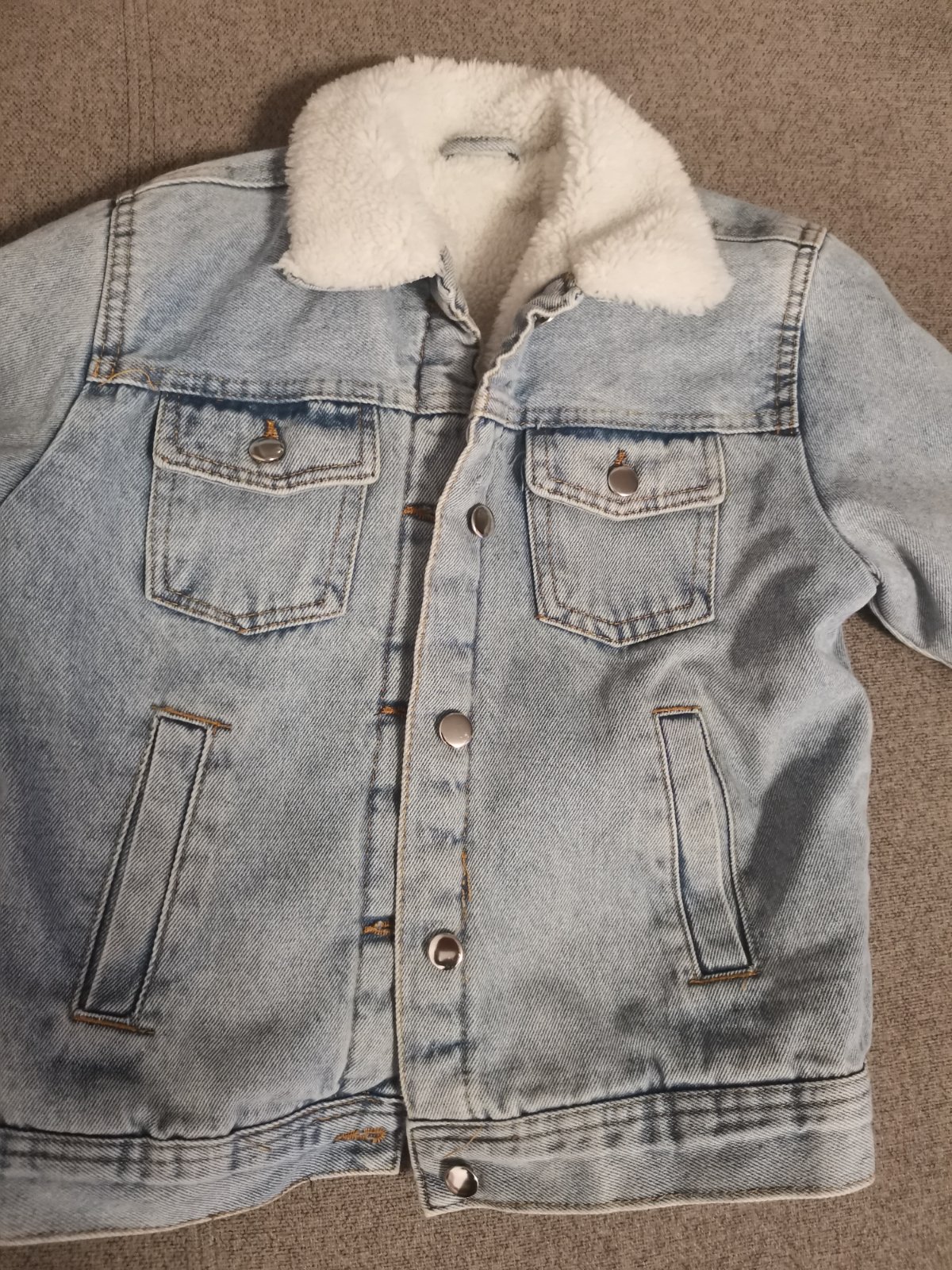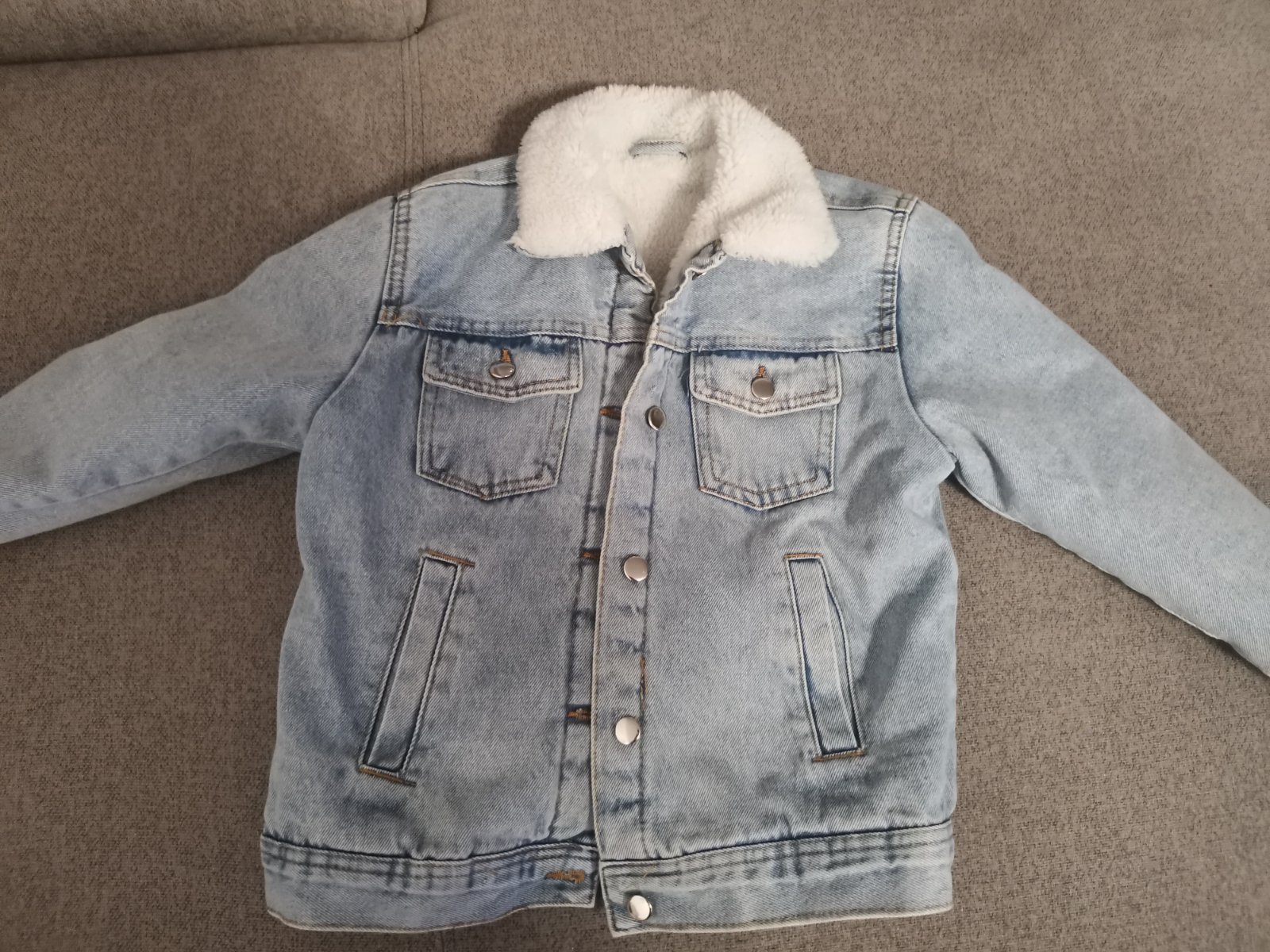 Predám v super stave riflovú bundu 134. Cena 13.50e a 1,50e doprava . Rozmery na fotkách