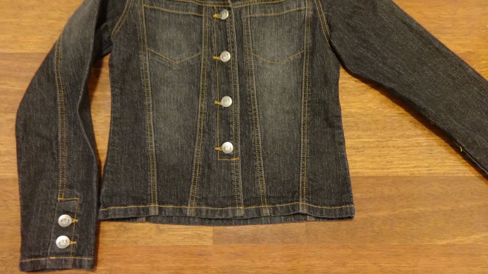 Fransa riflová bunda, ako nová, elastická, rozmery: dl.-46 cm, š.-2x35,5 cm, dl.rukáva od ramena 53,5cm