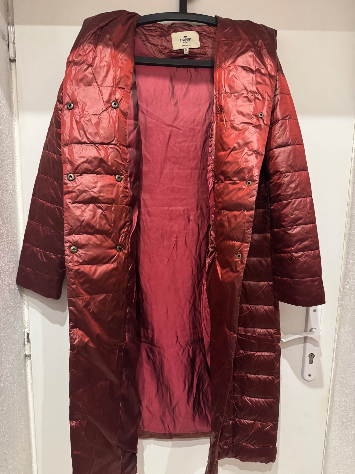 Nový kabát bohužiaľ mne malý, nevyuzijem, farba ako víno, podšitý, dĺžka 80 cm, pás 44 cm, dolu najširšia časť 60 cm, rukáv plus plece spolu 70 cm, z toho plece 12 cm, písané L ale riaďte sa rozmer...