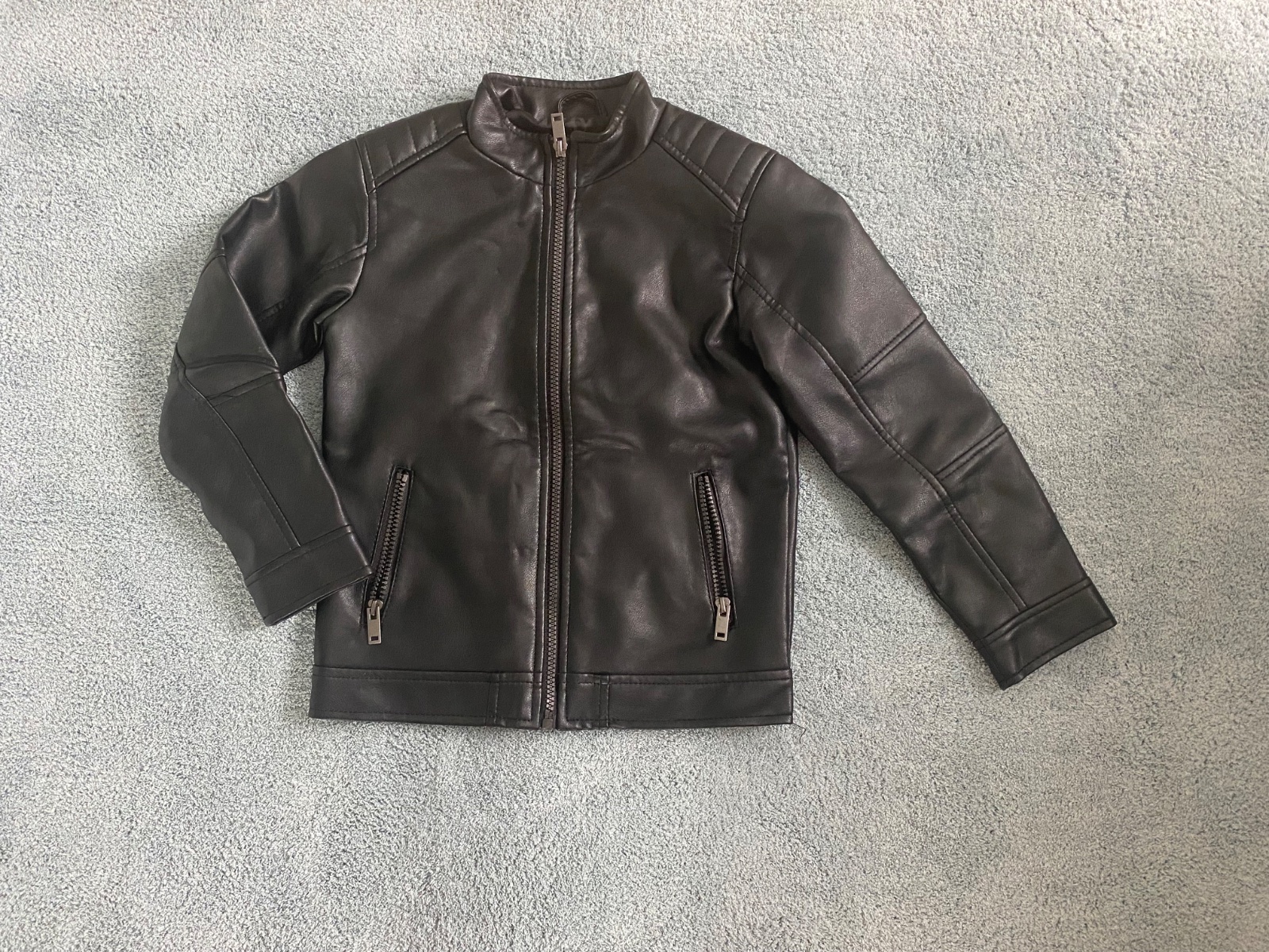Predám chlapčenskú koženkovú bundu vo veľmi dobrom stave( malo nosená). Dľzka rukáva od ramena 44cm, obvod hrude 73cm, dľzka chrbta 46cm.