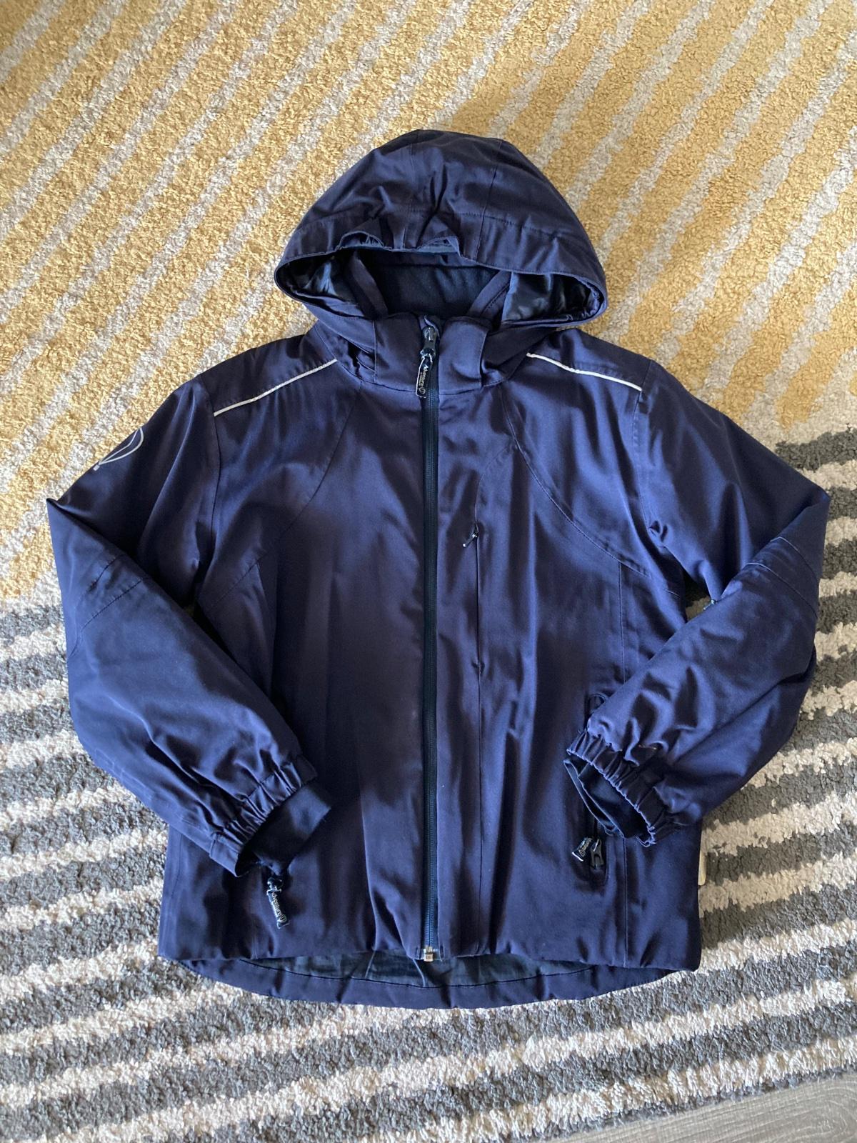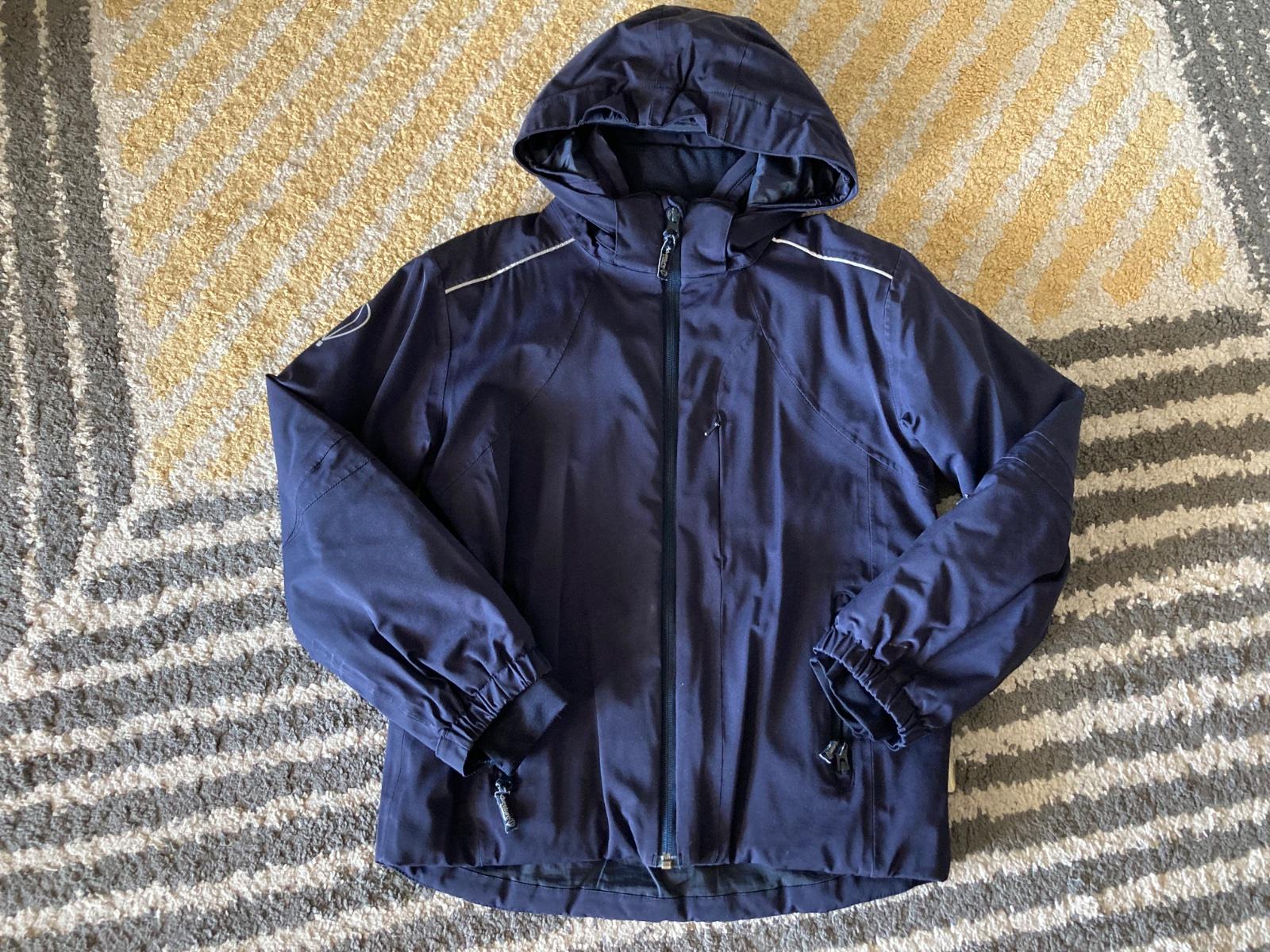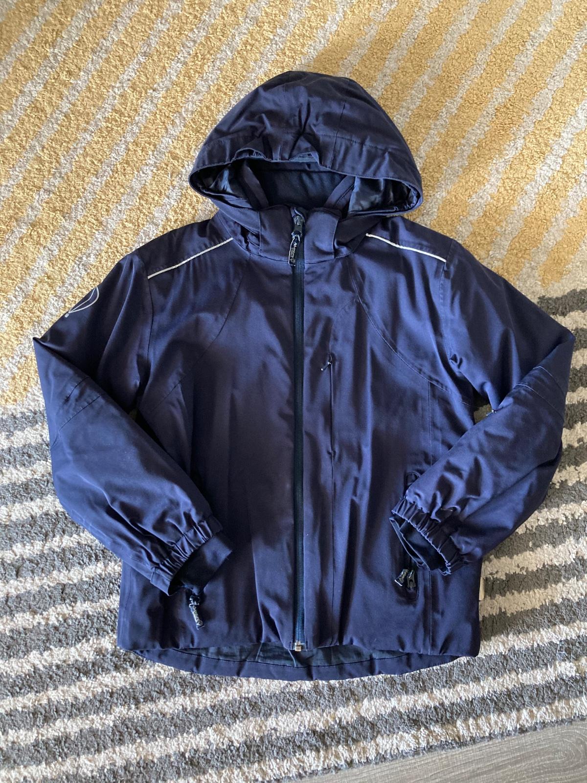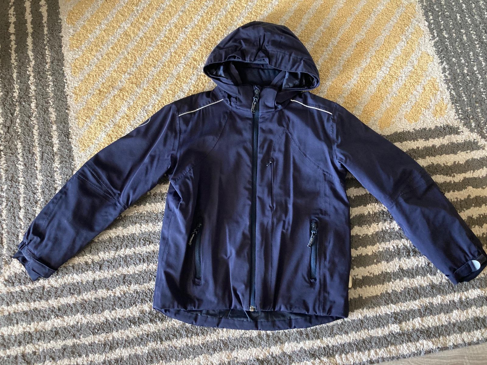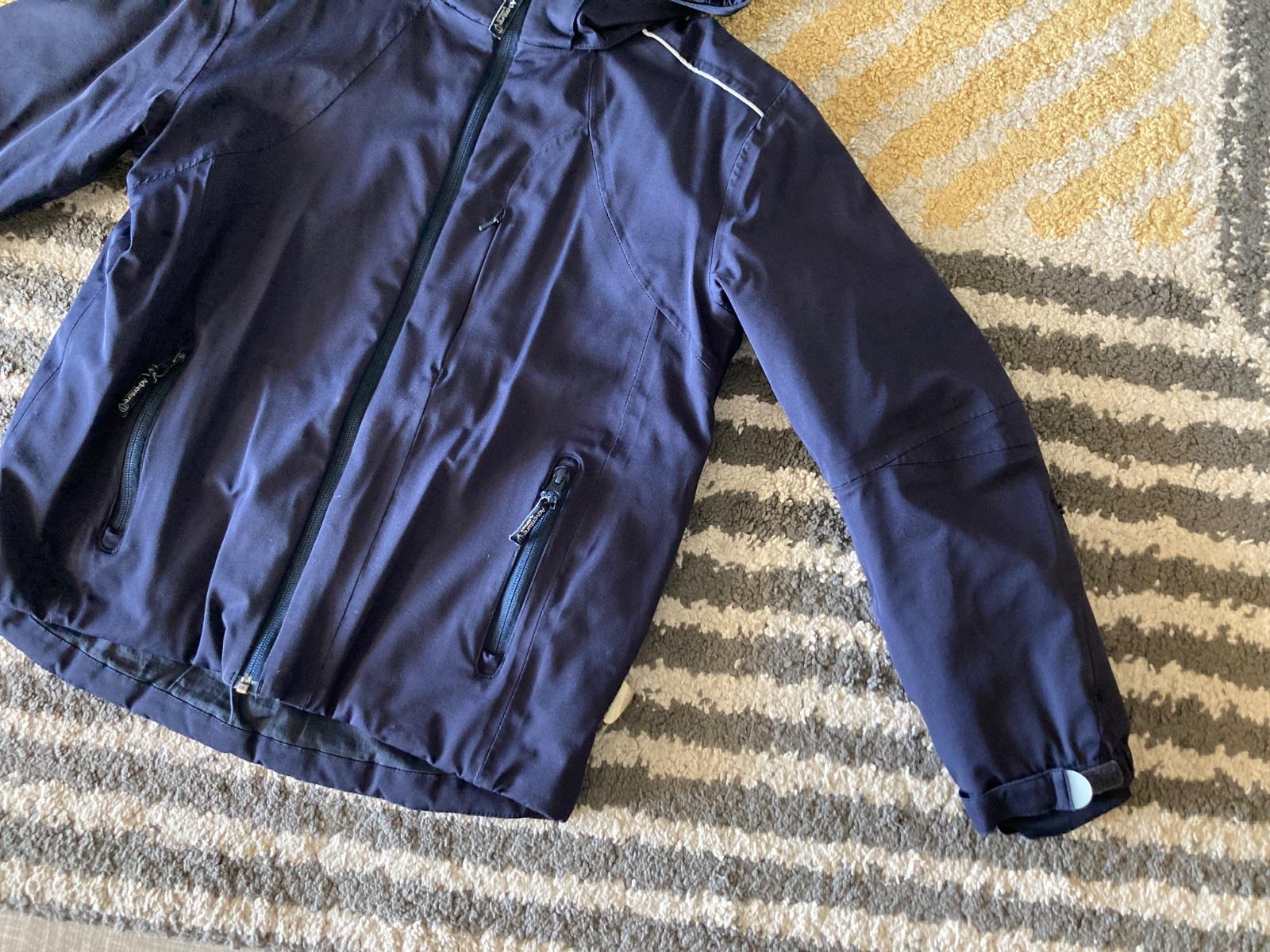vodeodolná, odopínacia kapuca, snežný pás, reflexný prvok, nájde sa miniošuch, ošuchnutý bežec zipsu