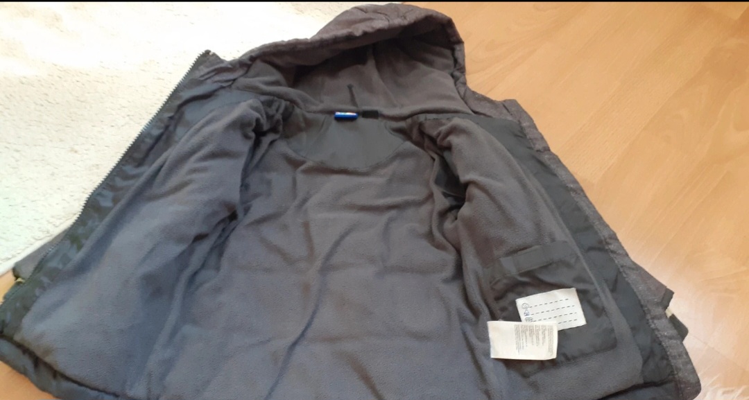 Velmi pekna zimna bunda s kapucnou, znacka Lupilu, vel. 92. Podsita cervenym fleecom.