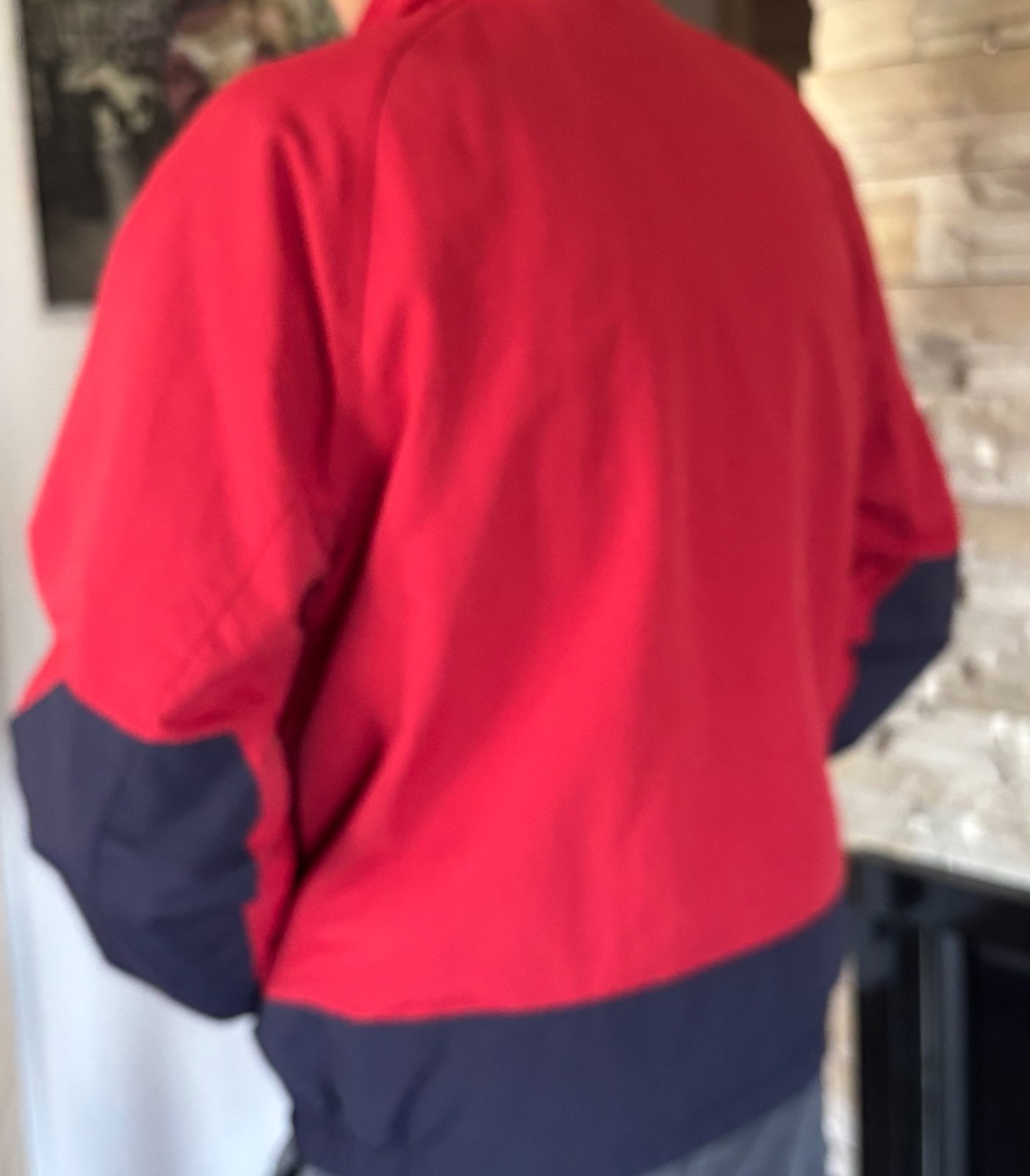 Veľmi kvalitne vypracovaná a v podstate aj obostranne nositeľná. Červeno-modrá strana je látková, vnútorná tmavomodrá je flisová.