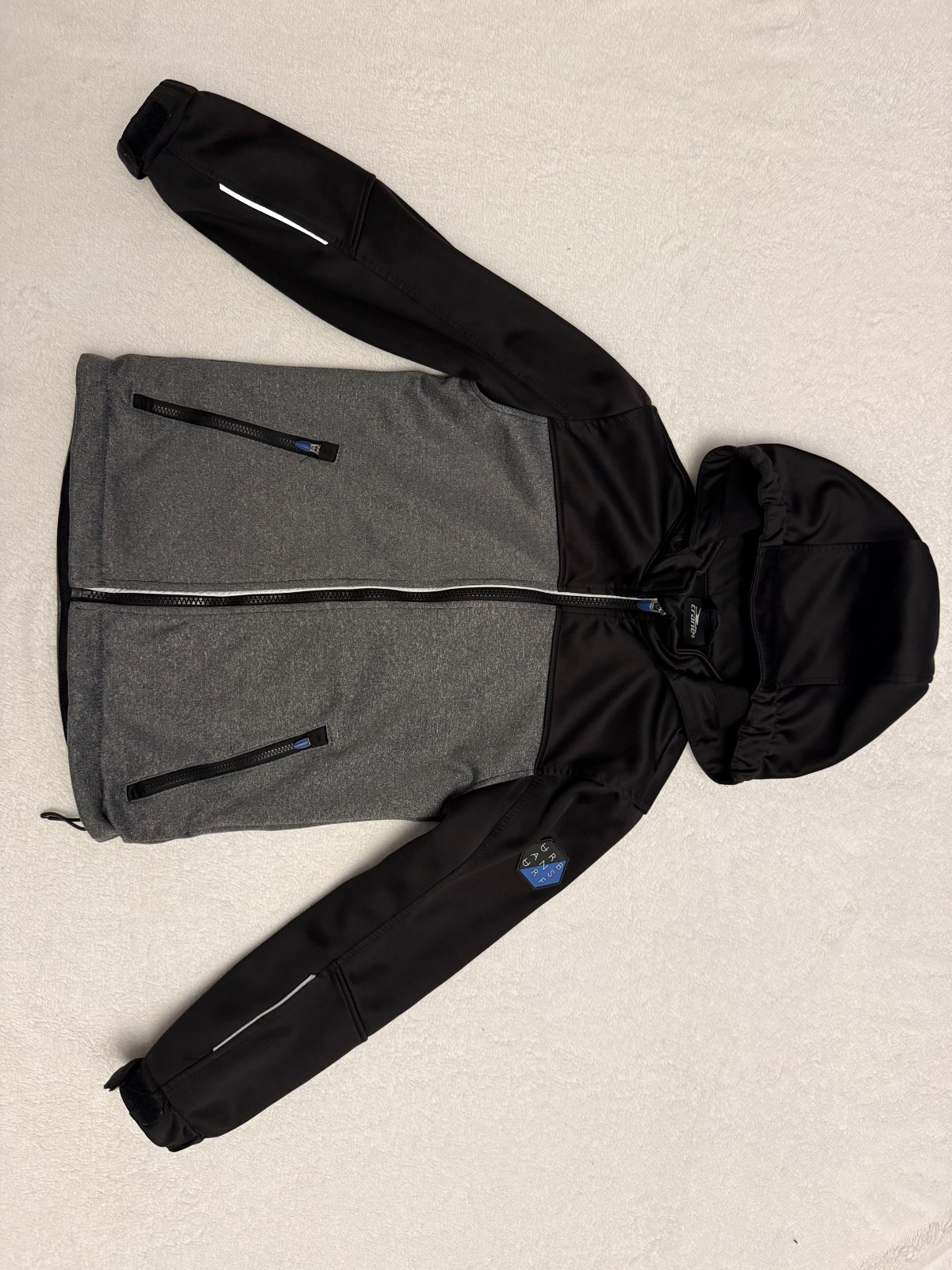 Softshell bunda vyteplena fleece, odnimatelna kapucna, reflexne prvky, velmi dobry stav 400g