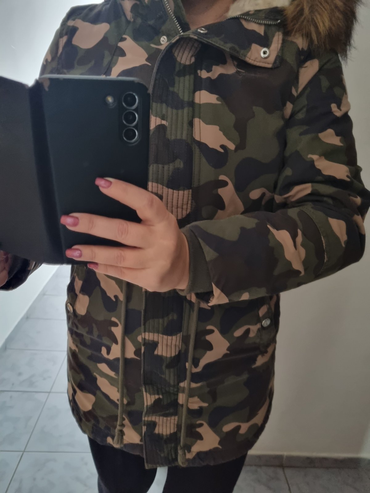 Predám bundu, ktorá je z kolekcie H&M Mama, ale ja som ju nosila bežne bez tehotenstva. Jemne A strihu, BEZ prídavnéj casti na prednom dieli, vo vyššej časti pása z vnútornej strany zatahovacia sn...