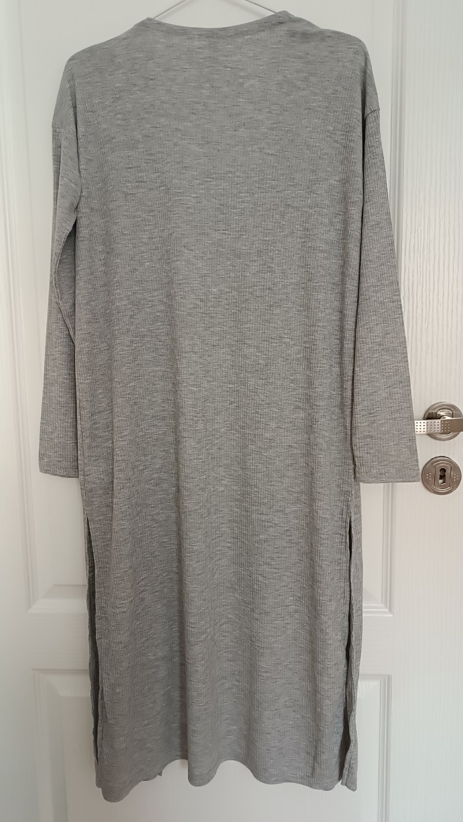 dĺžka 110cm, pod pazuchami šírka 48 cm, rukáv od krku 70 cm, po oboch stranách sú rozparky, 65%polyester, 35% viskoza