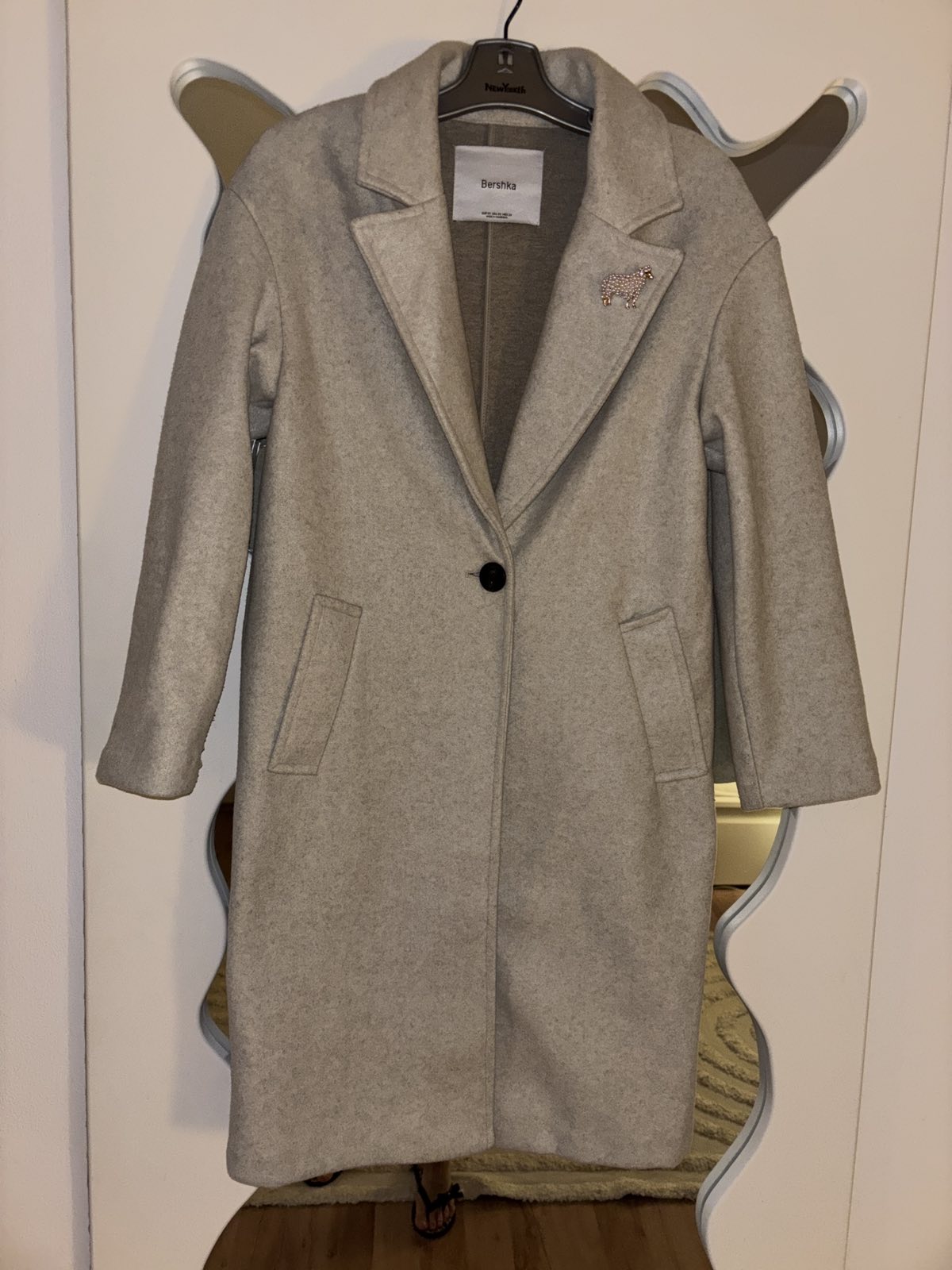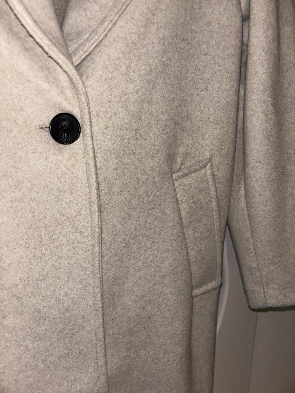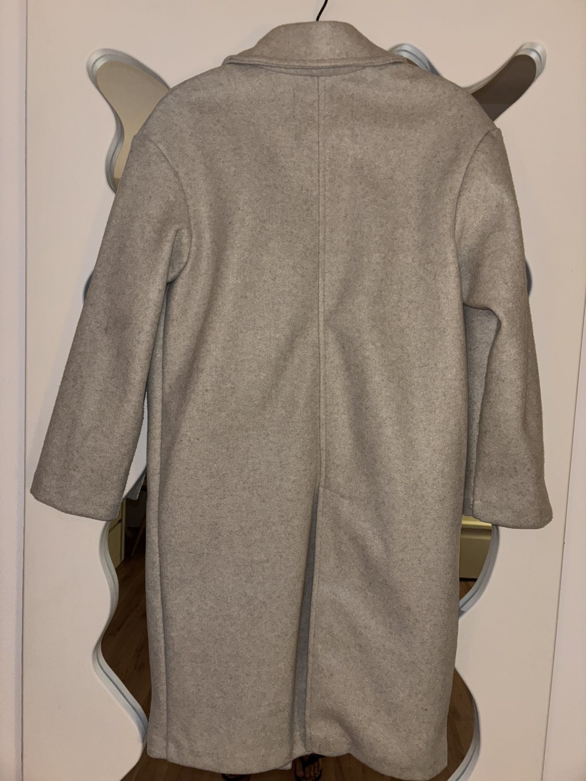 Nový bez visačky, svetlunko krémovo-šedý, prechodný alebo na miernejšiu zimu, veľkosť XS, aj na S /M, šírka pod pazuchami cca 51 cm, dĺžka 101 cm